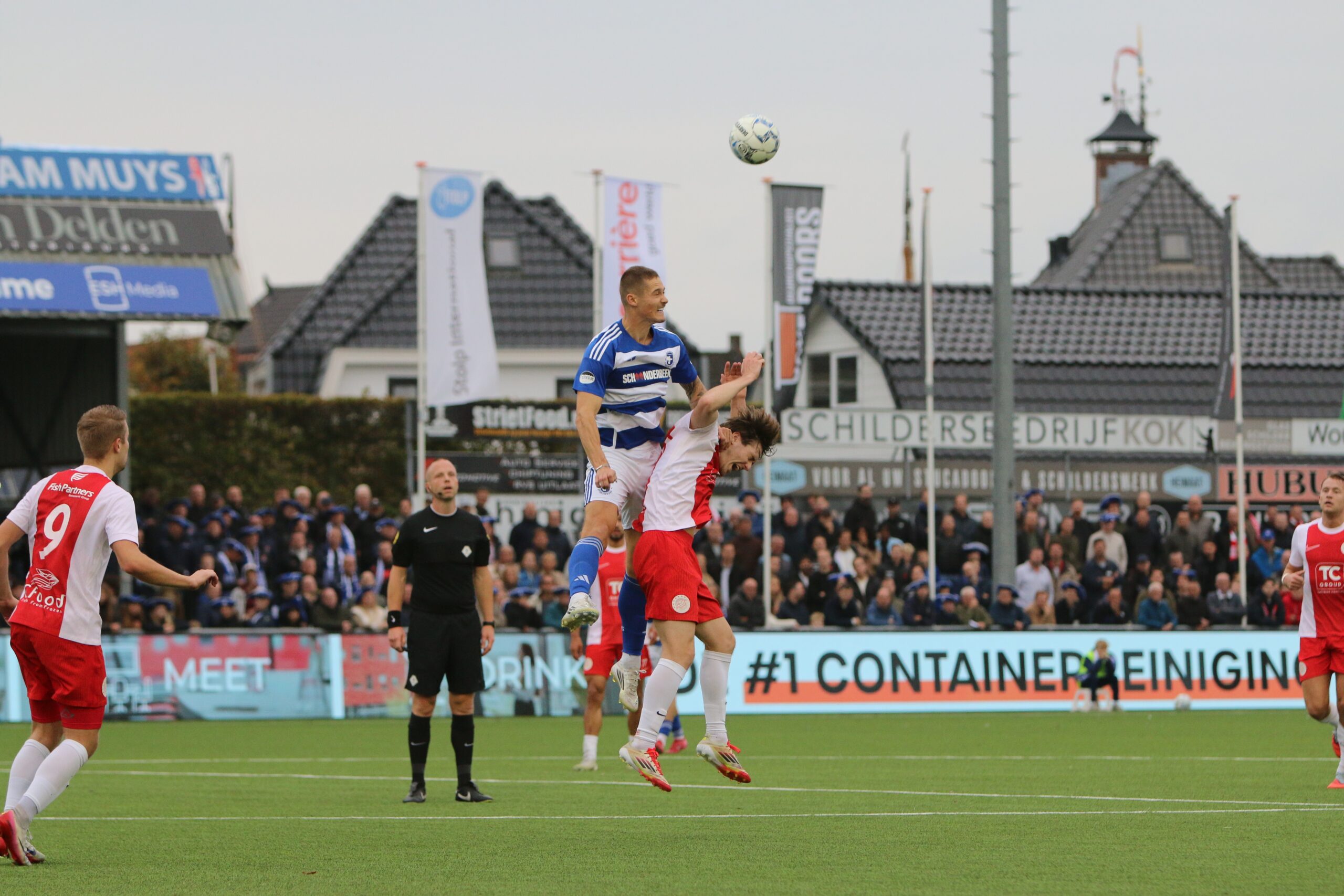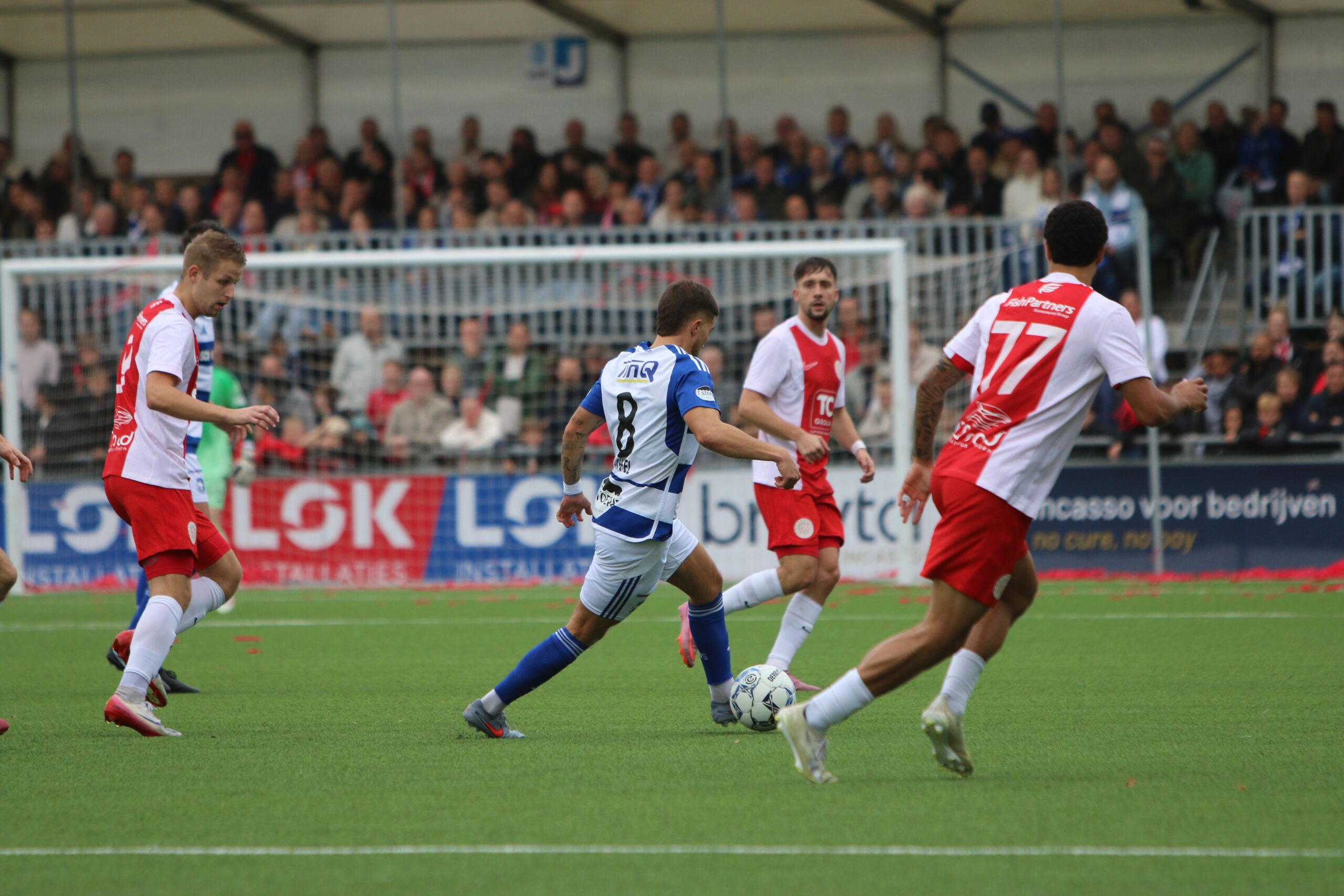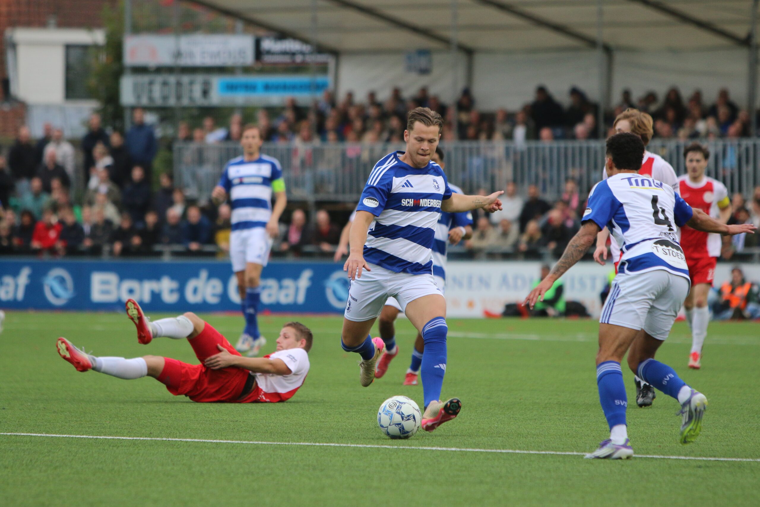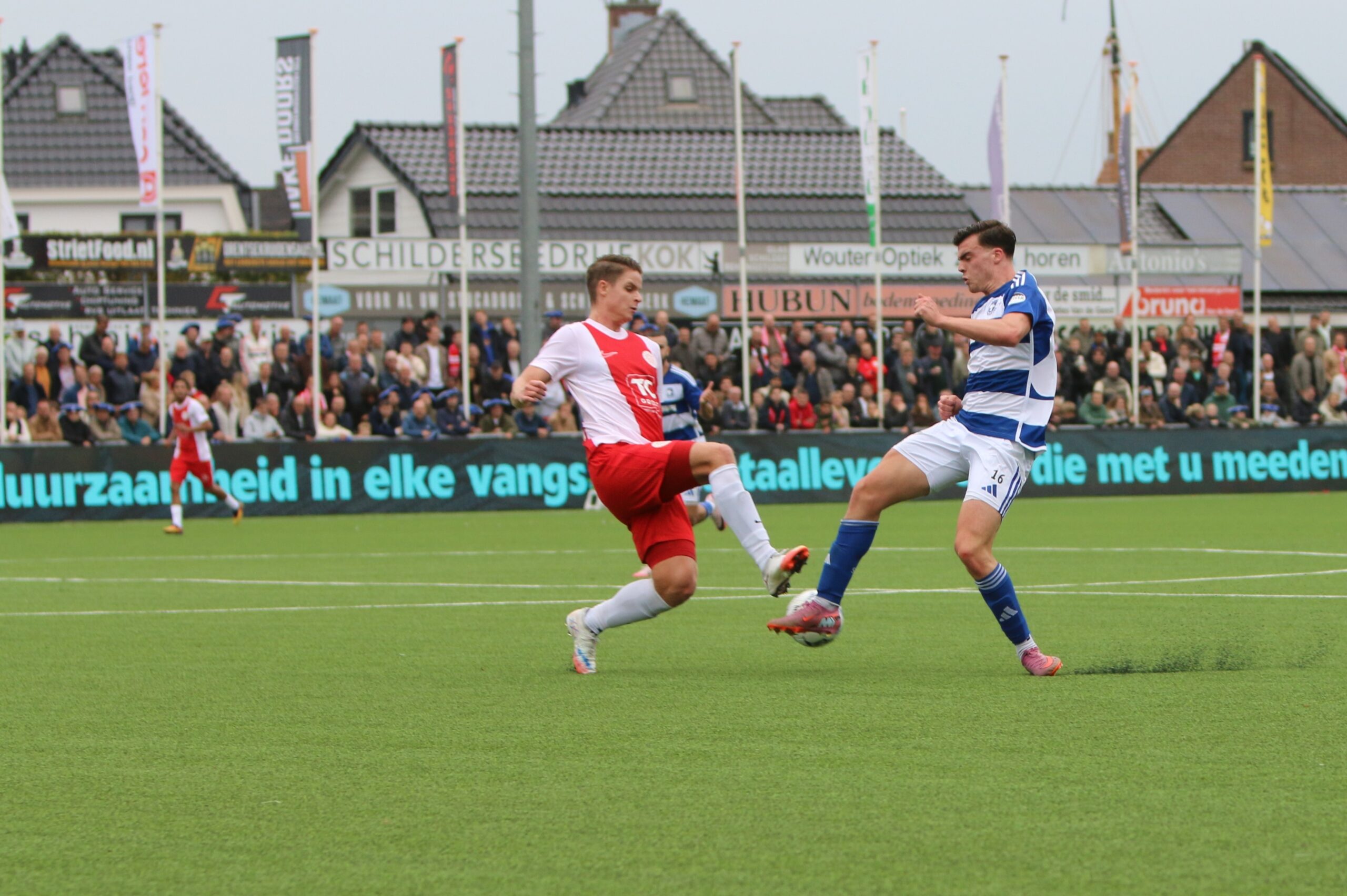 Spakenburg heeft afgelopen zaterdag in dubbel opzicht uitstekende zaken gedaan. Ten eerste werd de burenruzie met IJsselmeervogels met 1-0 gewonnen. Ten tweede houden de Blauwen hierdoor, en mede door de uitslagen op de andere velden, nog altijd zicht op de huidige koplopers in de Tweede Divisie.