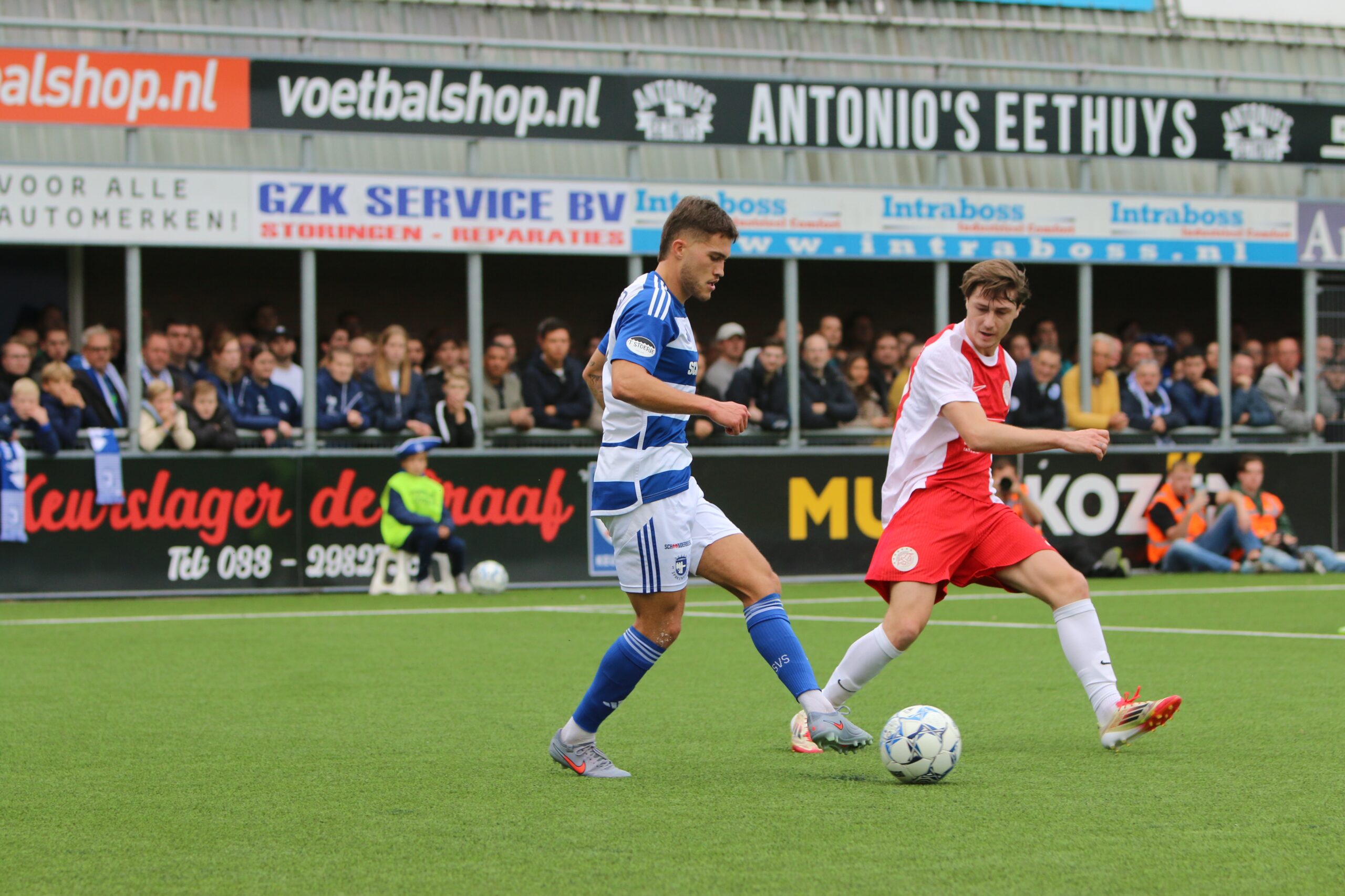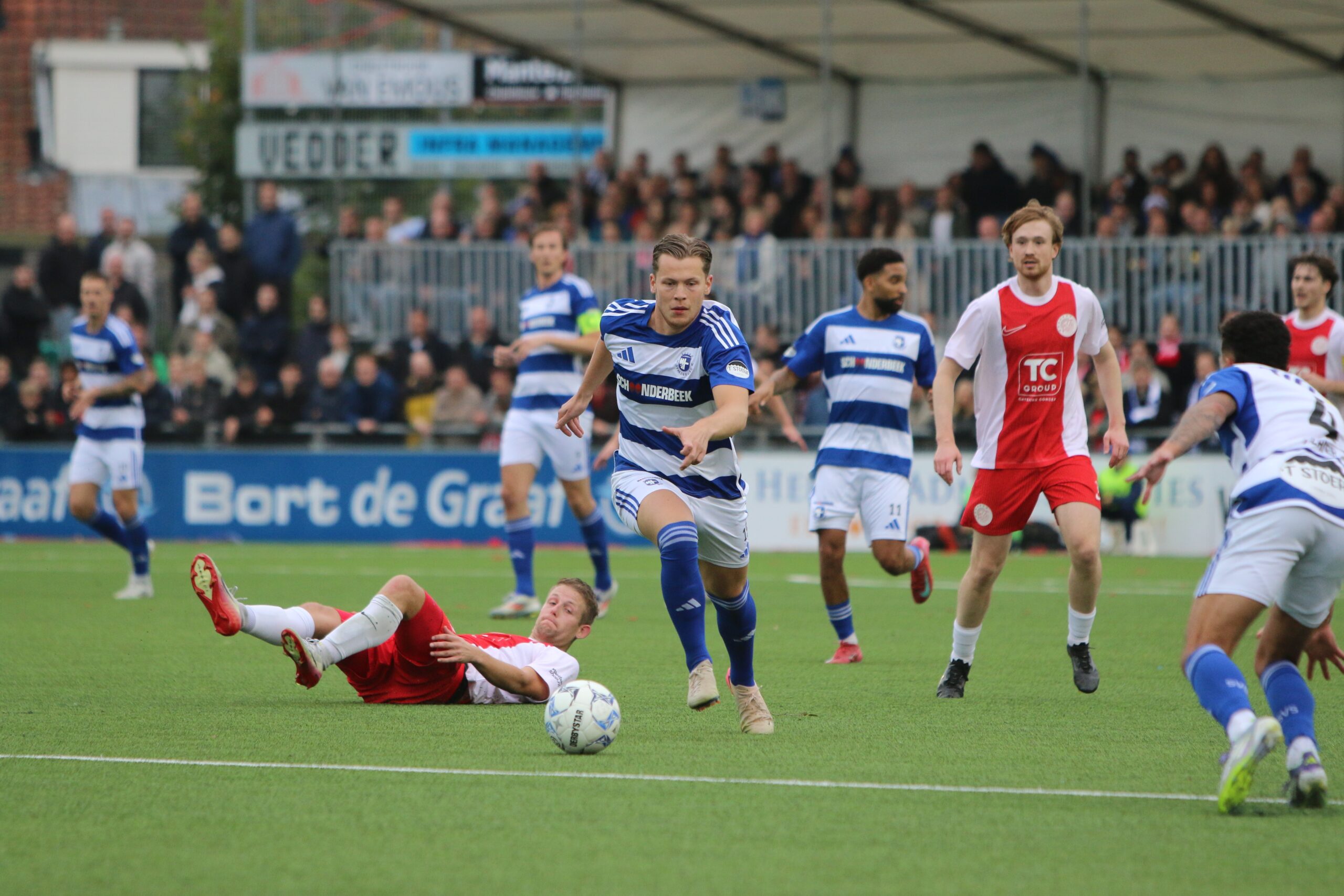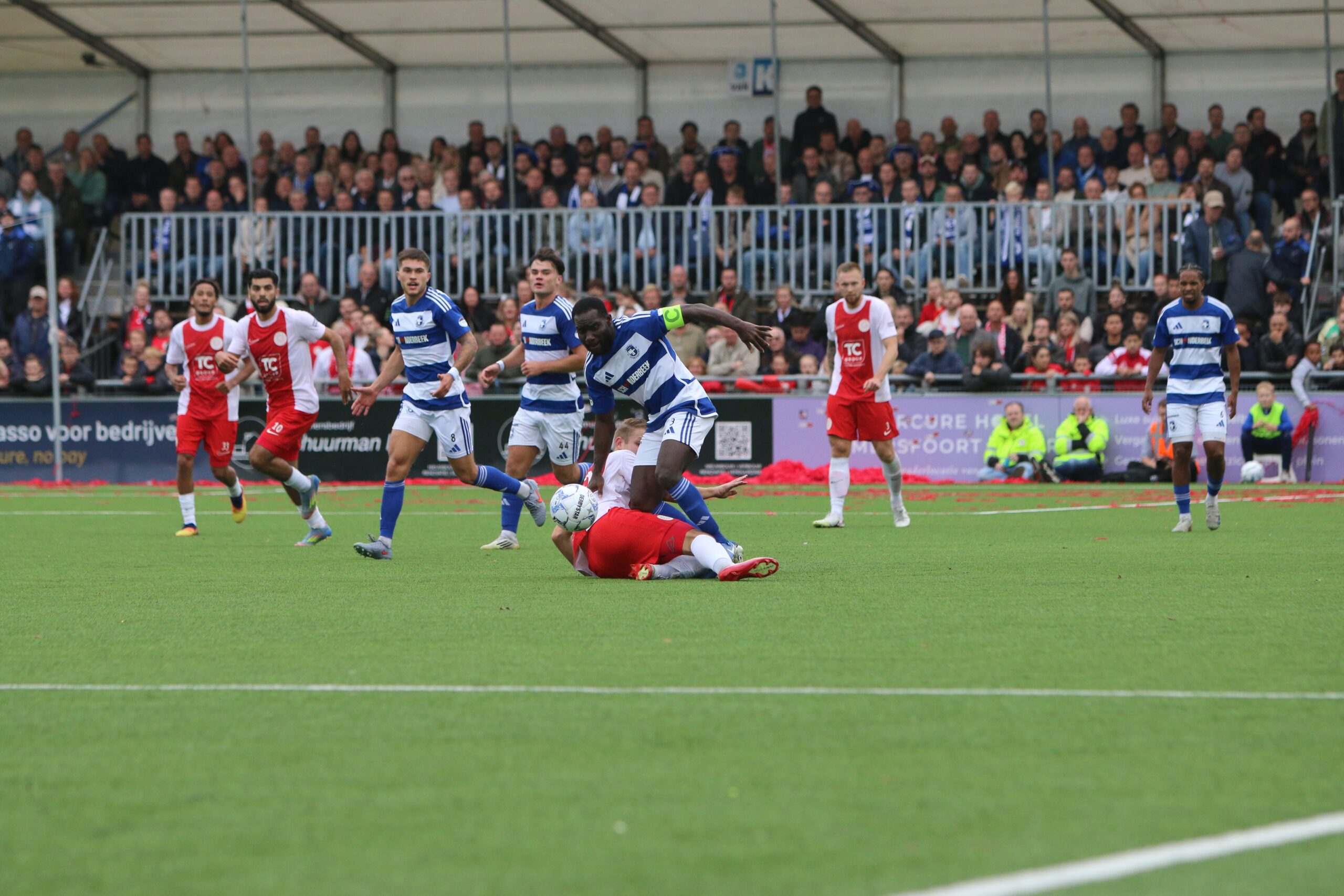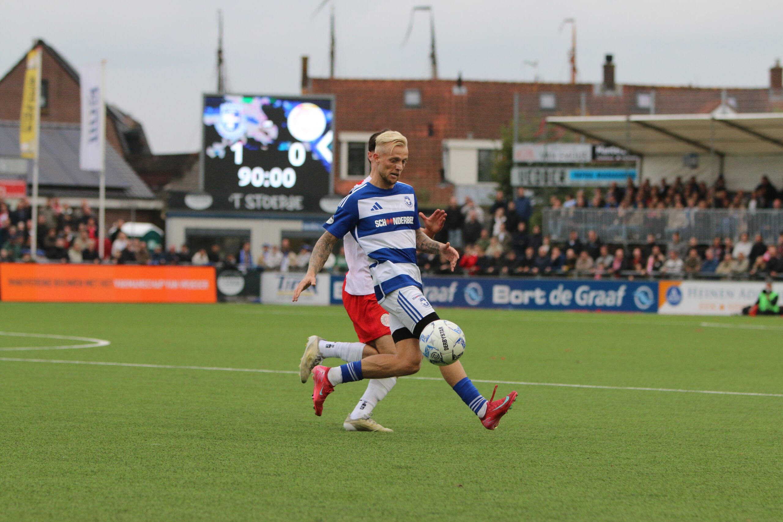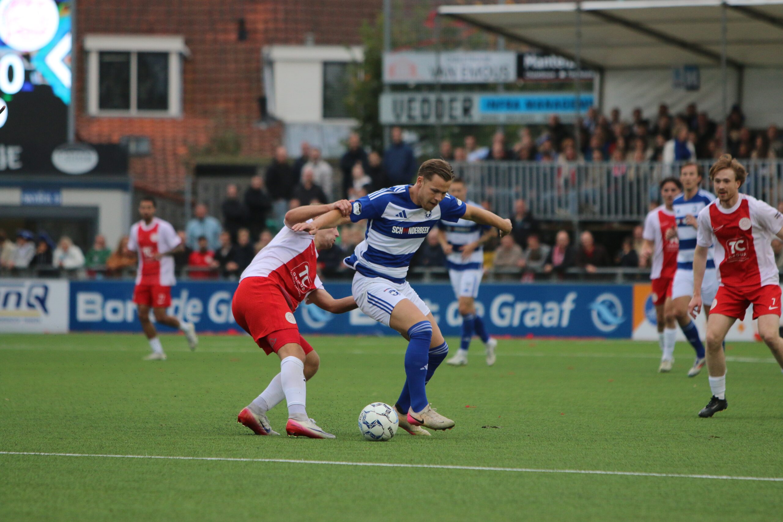 Spakenburg heeft afgelopen zaterdag in dubbel opzicht uitstekende zaken gedaan. Ten eerste werd de burenruzie met IJsselmeervogels met 1-0 gewonnen. Ten tweede houden de Blauwen hierdoor, en mede door de uitslagen op de andere velden, nog altijd zicht op de huidige koplopers in de Tweede Divisie.