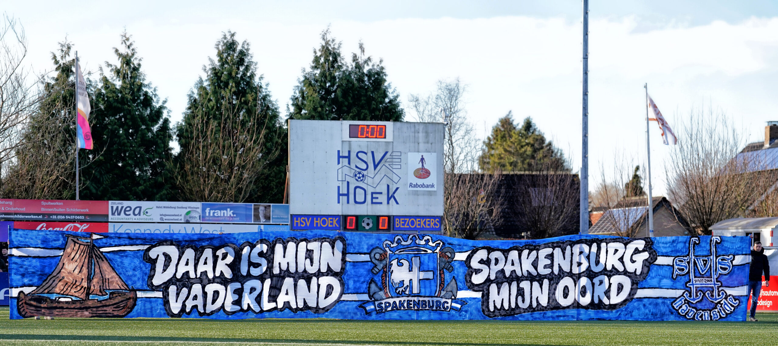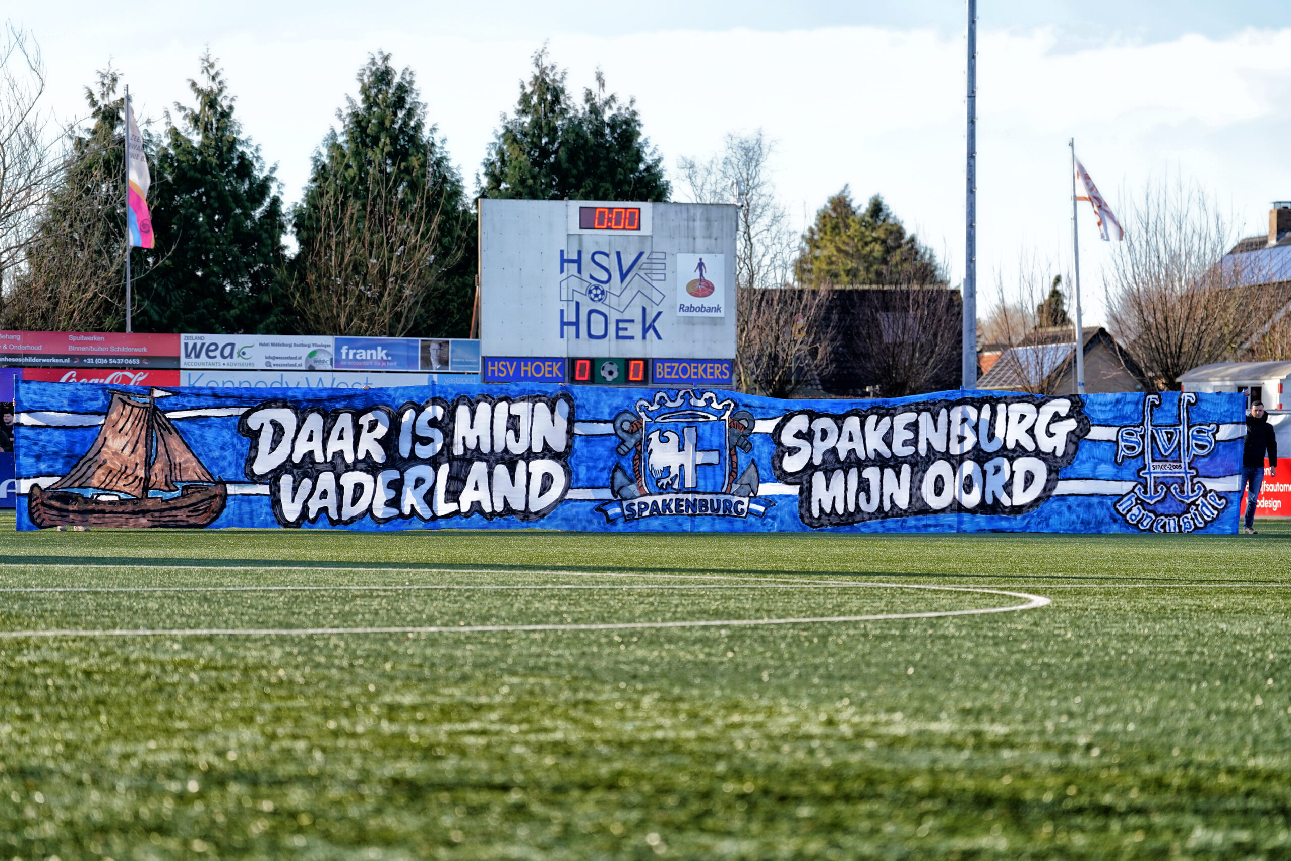 Hierna vond scheidsrechter Vereijken het welletjes en floot hij die middag voor het laatst. Beide ploegen zijn met dit gelijke spel niet echt opgeschoten alhoewel koploper Quick Boys thuis verrassend met 1-3 verloor van Barendrecht waardoor Spakenburg en Hoek een punt op de koploper zijn ingelopen. Volgende week komt RKAV Volendam op bezoek. Die wedstrijd, zoals iedere wedstrijd trouwens, begint op 0-0 en de aftrap om 15:00 uur. Tot dan en Forza Blauwen!