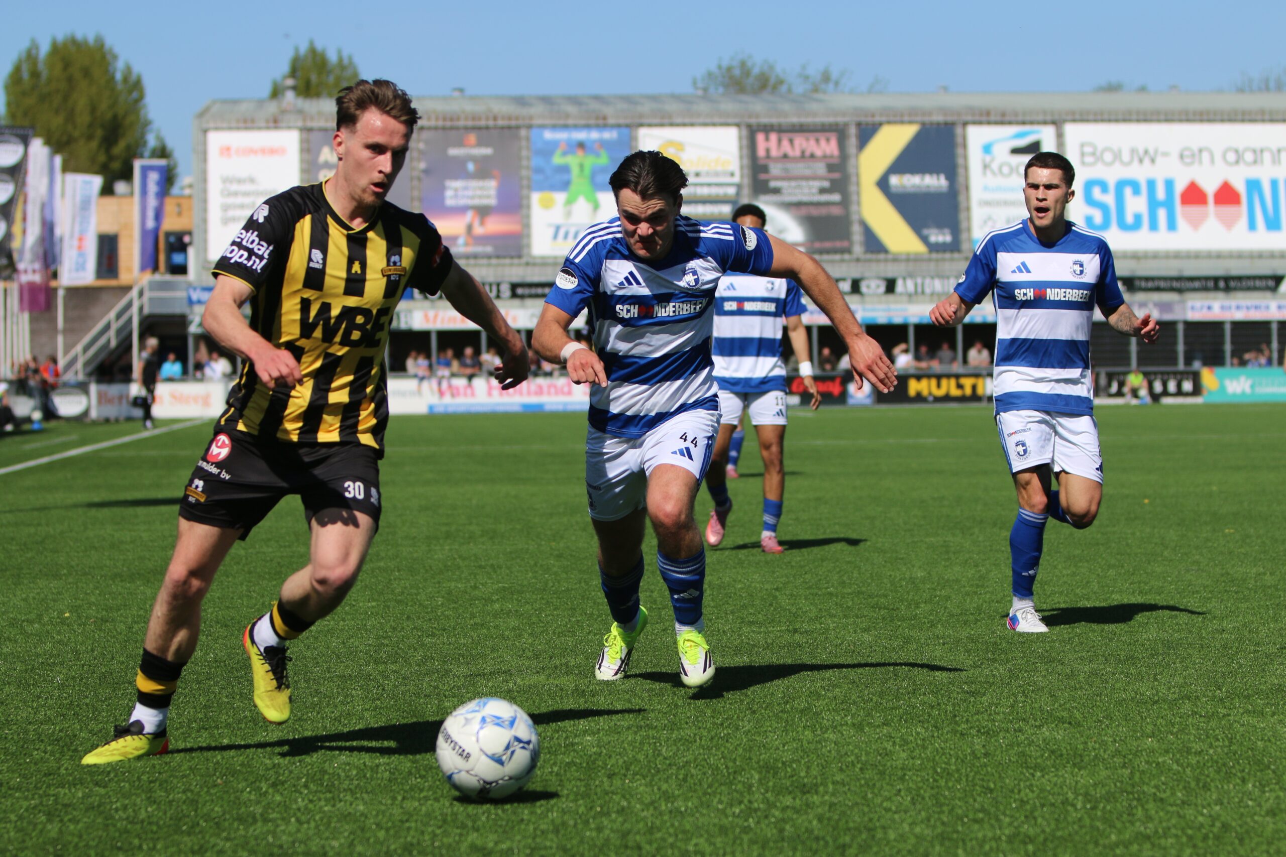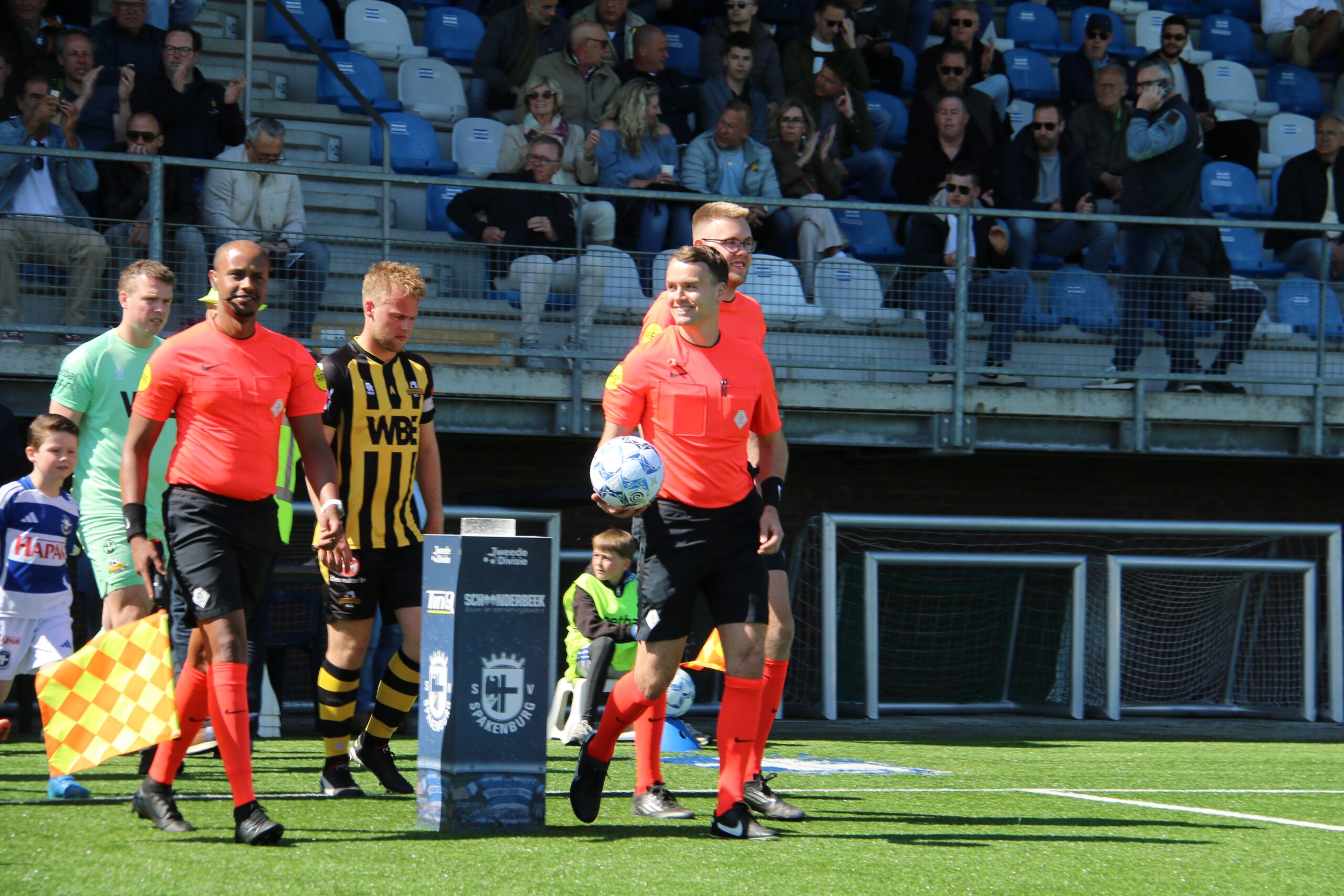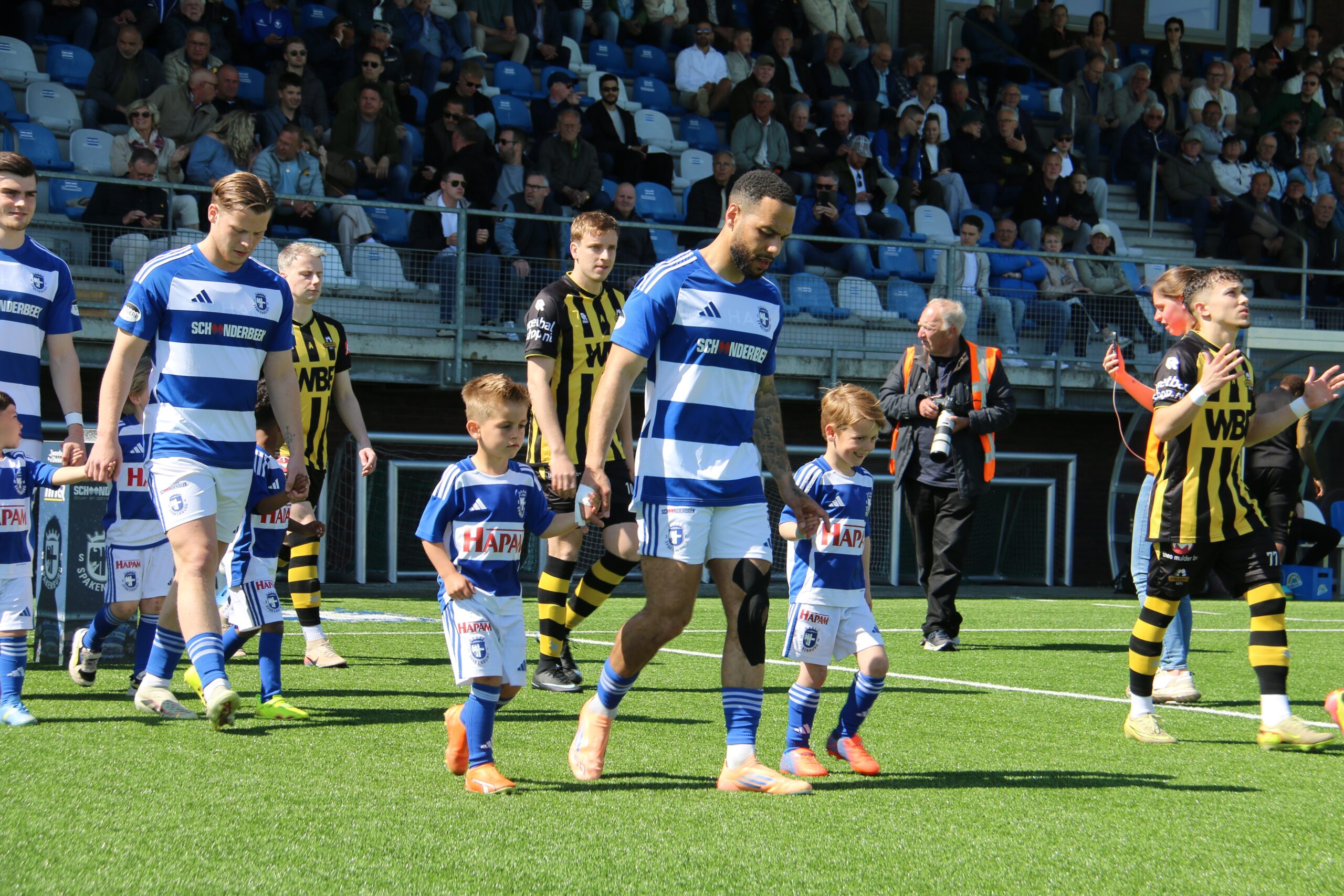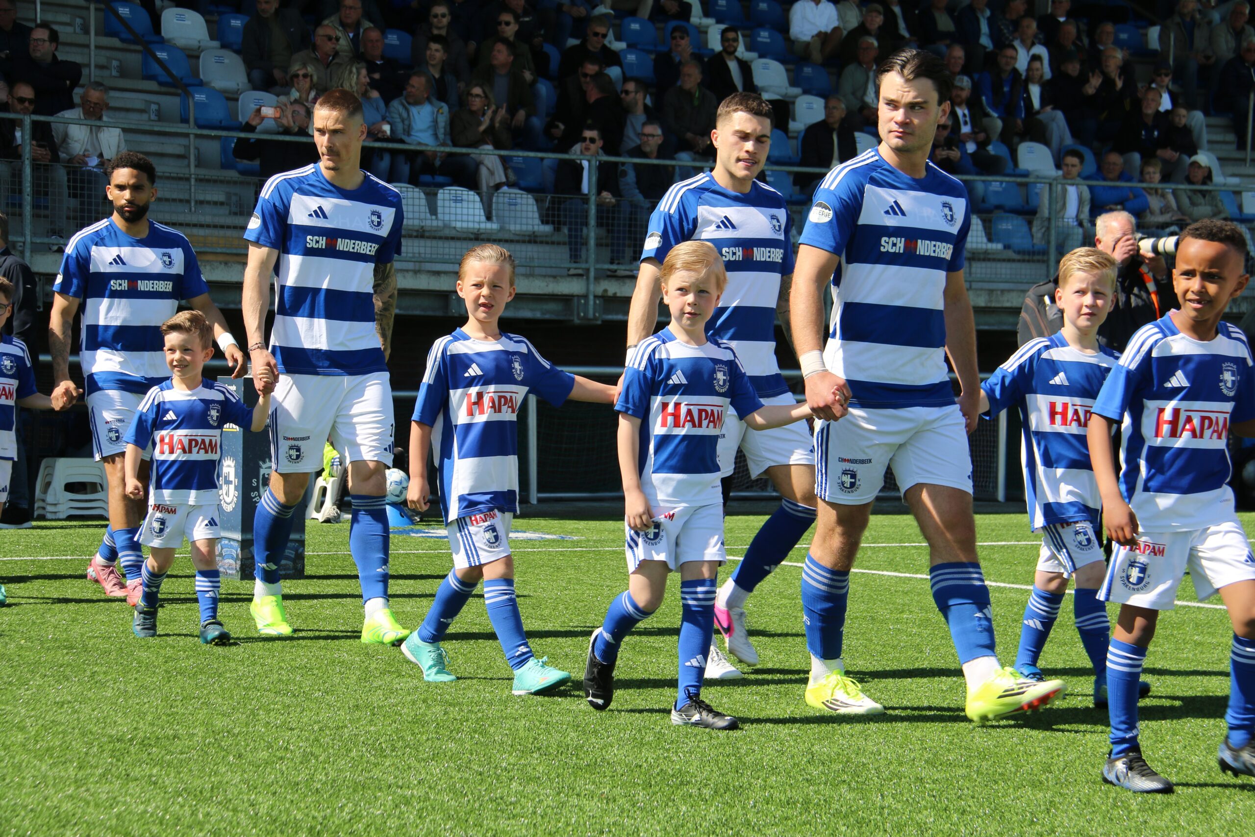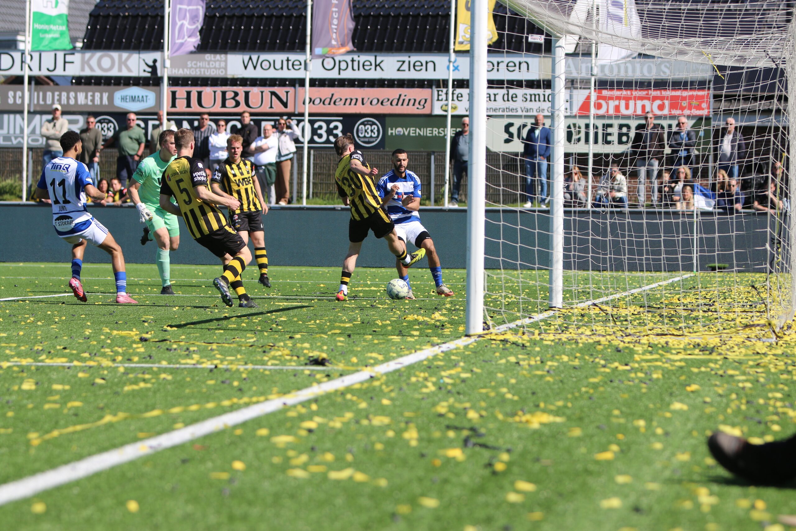 De wedstrijd begon met een lichte vertraging vanwege het opruimen van confetti op het veld, maar daarna ontspon zich al snel een levendig duel. In de openingsfase moest doelman Joey Houweling direct handelend optreden na een gevaarlijke tegenstoot. Onze Blauwen lieten zich echter eveneens gelden, met onder meer grote kansen voor Ravelino Junte en Ahmed El Azzouti, die naast schoot.