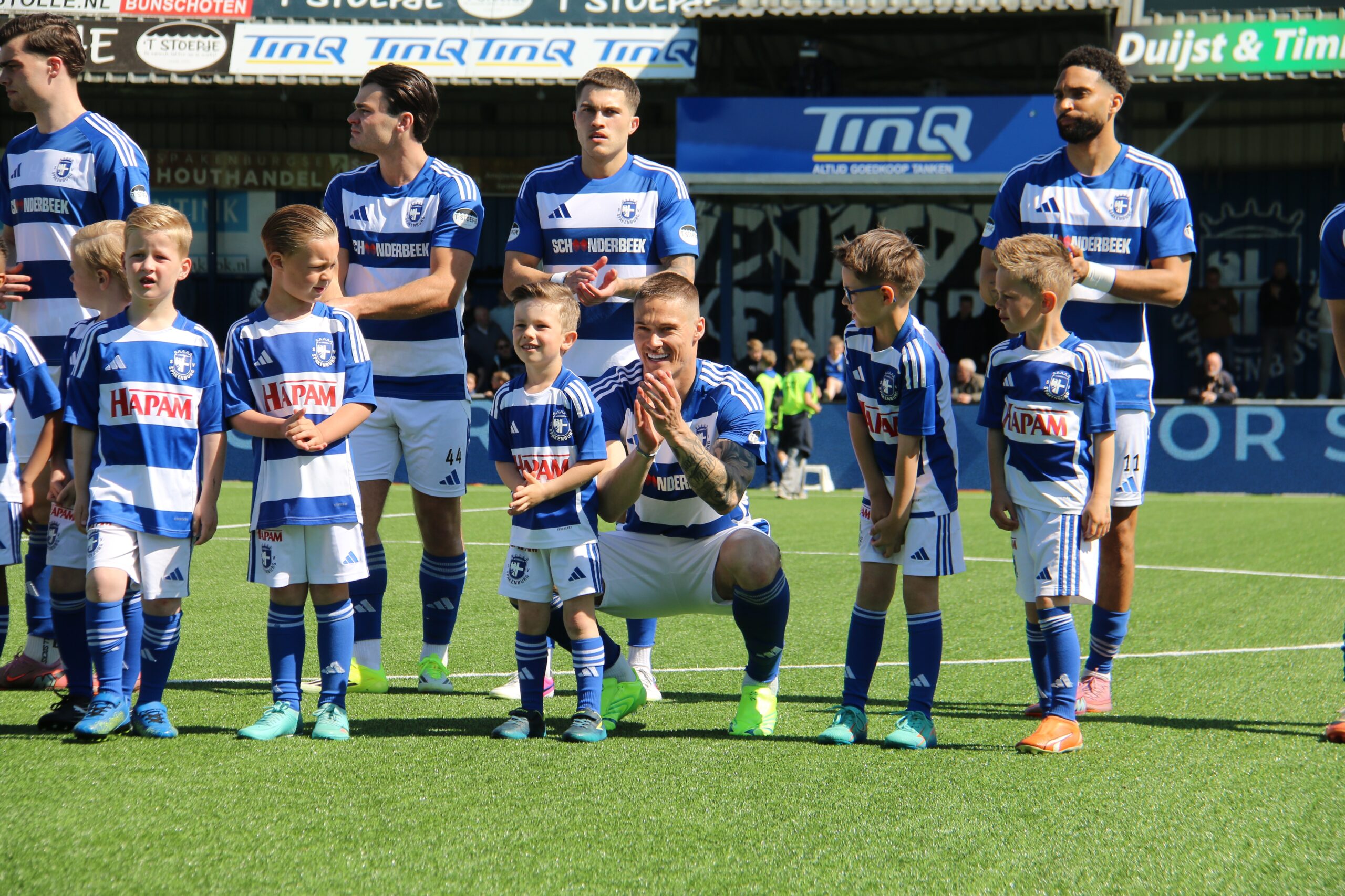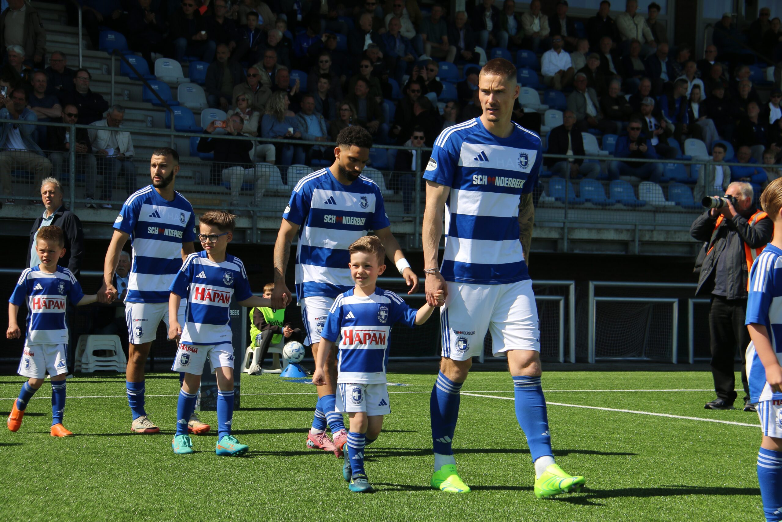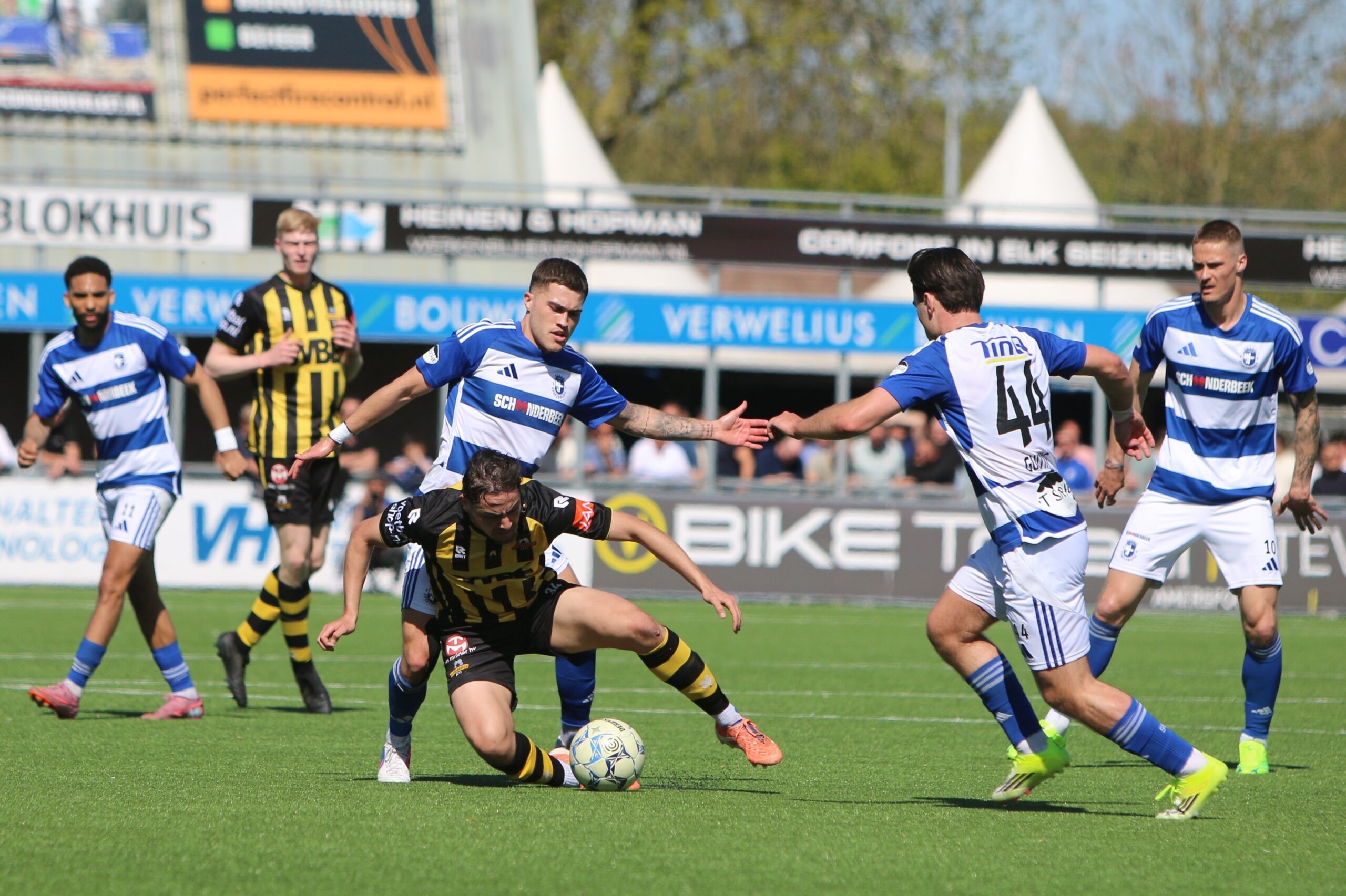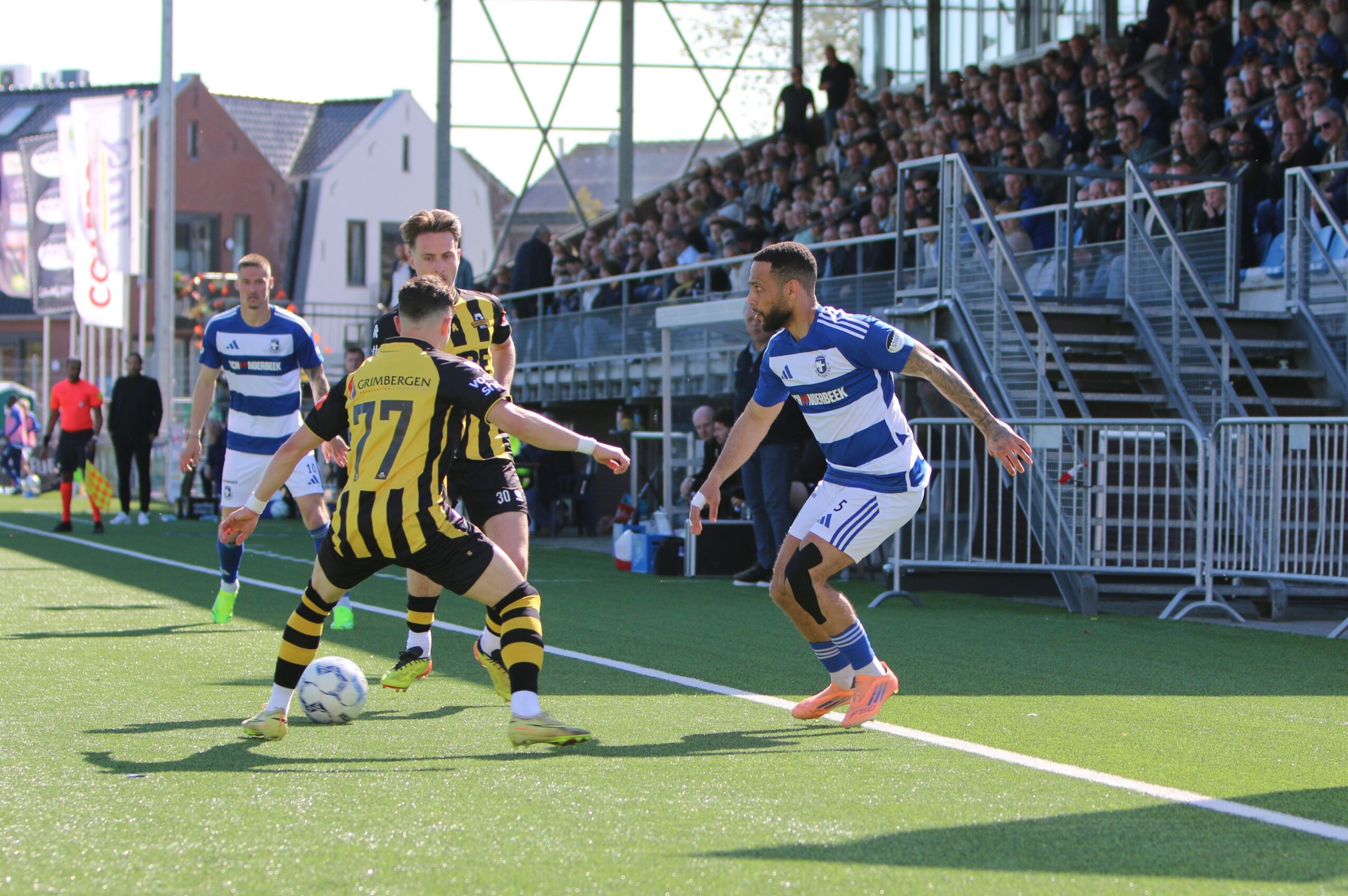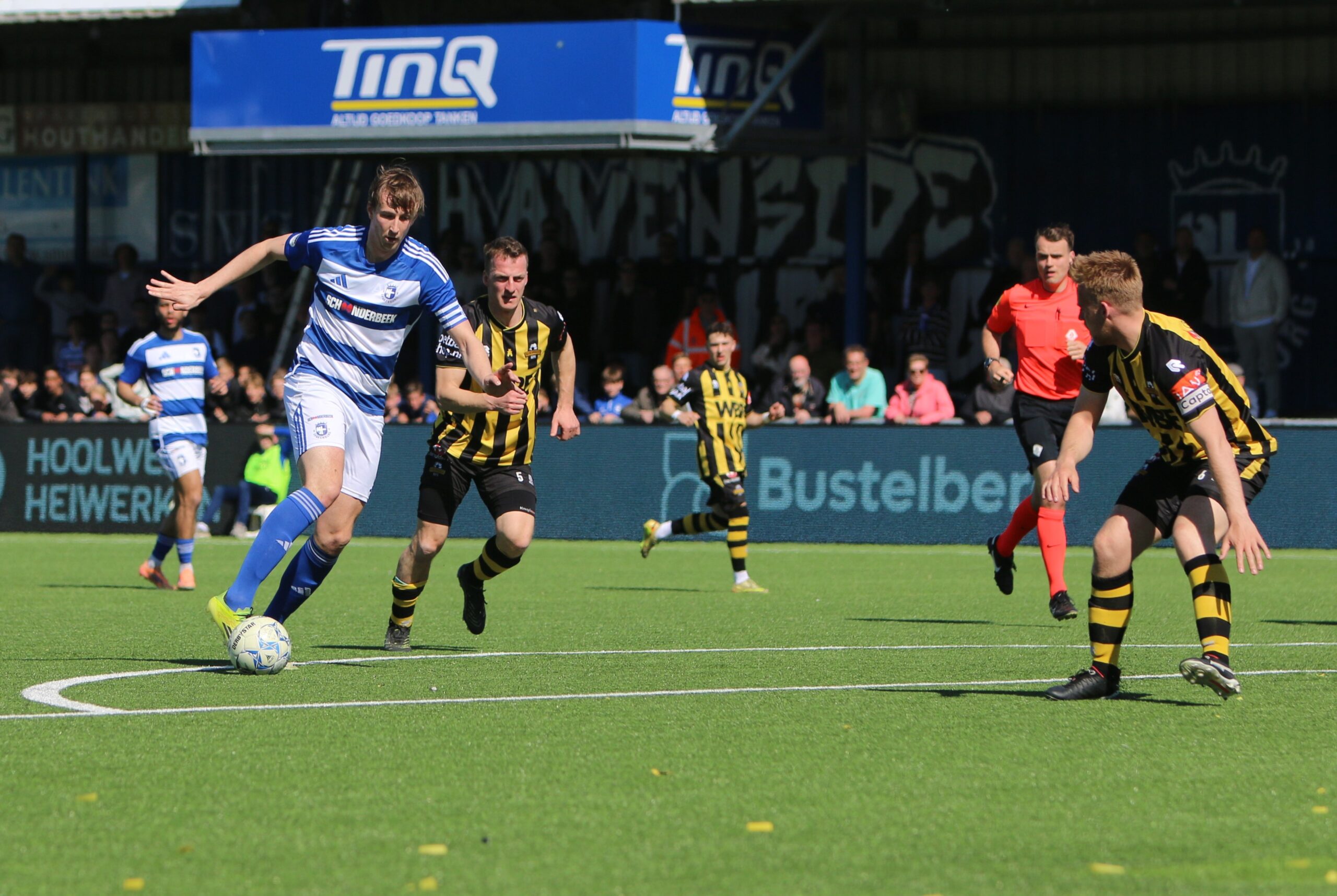 De wedstrijd begon met een lichte vertraging vanwege het opruimen van confetti op het veld, maar daarna ontspon zich al snel een levendig duel. In de openingsfase moest doelman Joey Houweling direct handelend optreden na een gevaarlijke tegenstoot. Onze Blauwen lieten zich echter eveneens gelden, met onder meer grote kansen voor Ravelino Junte en Ahmed El Azzouti, die naast schoot.