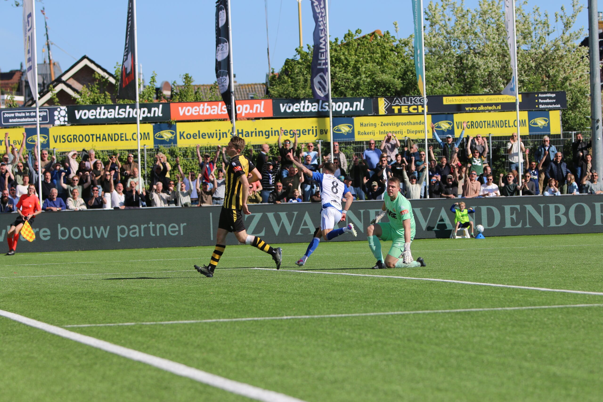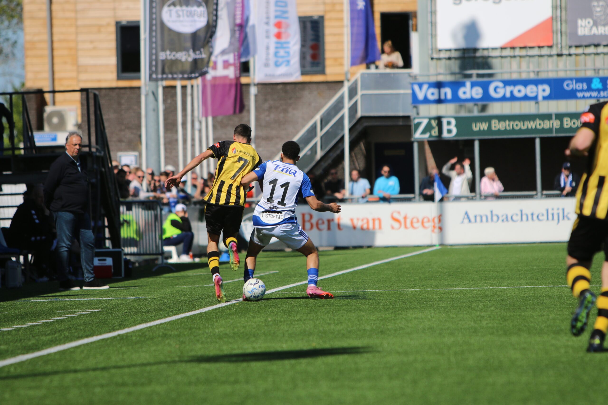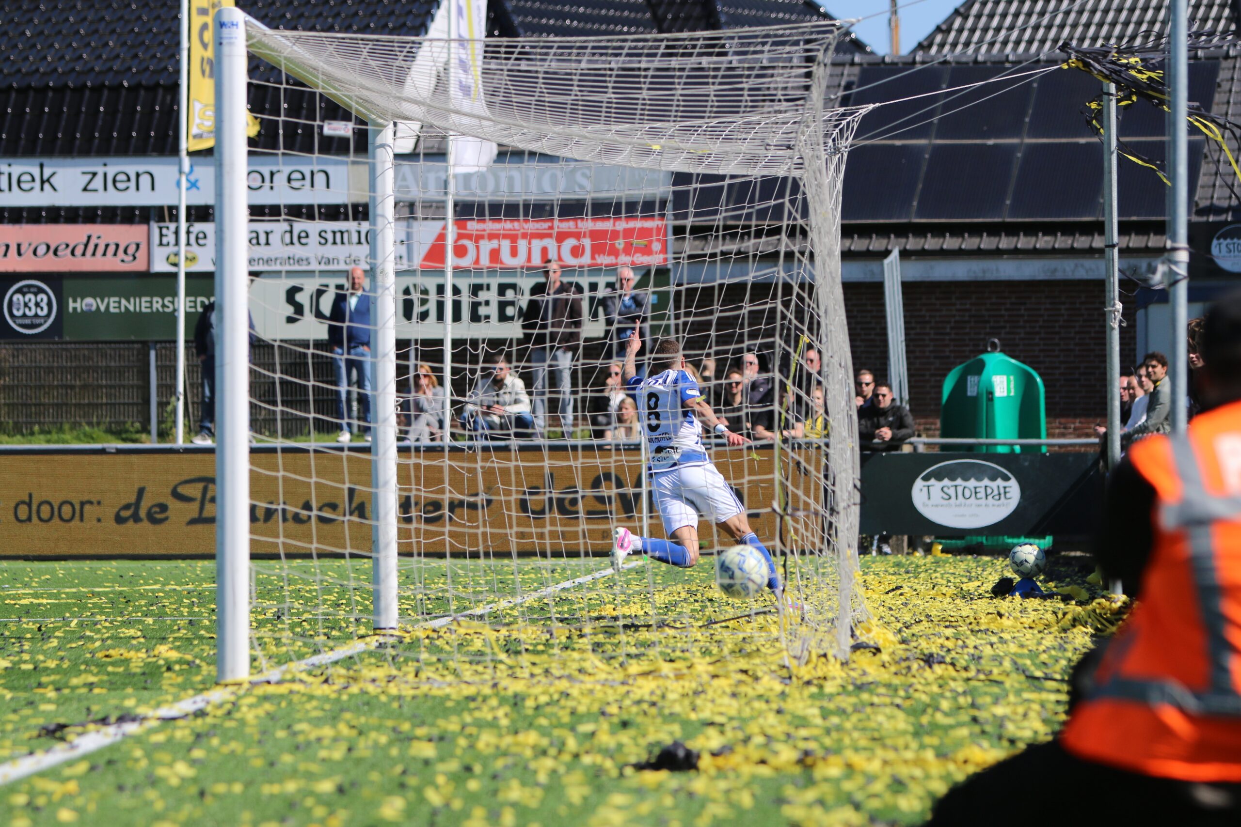 Maar wie dacht dat onze mannen onder grote druk zouden komen te staan, kwam bedrogen uit. SV Spakenburg verdedigde – opnieuw zonder Mitch Apau in de basis, die vlak voor tijd wel mocht invallen – gedisciplineerd en gaf nauwelijks iets weg. Sterker, ondanks een man minder, waren de mannen van hoofdtrainer Chris de Graaf gevaarlijker. Dat resulteerde in de 72e minuut in de 3-1. De onvermoeibaar strijdende Ahmed el Azzouti veroverde knap de bal en bediende Sam van Huffel. De middenvelder toonde zijn grote vorm door een verdediger eerst het bos in te sturen met een fantastische sleepbeweging, waarna hij overtuigend afrondde. Een geweldige goal!