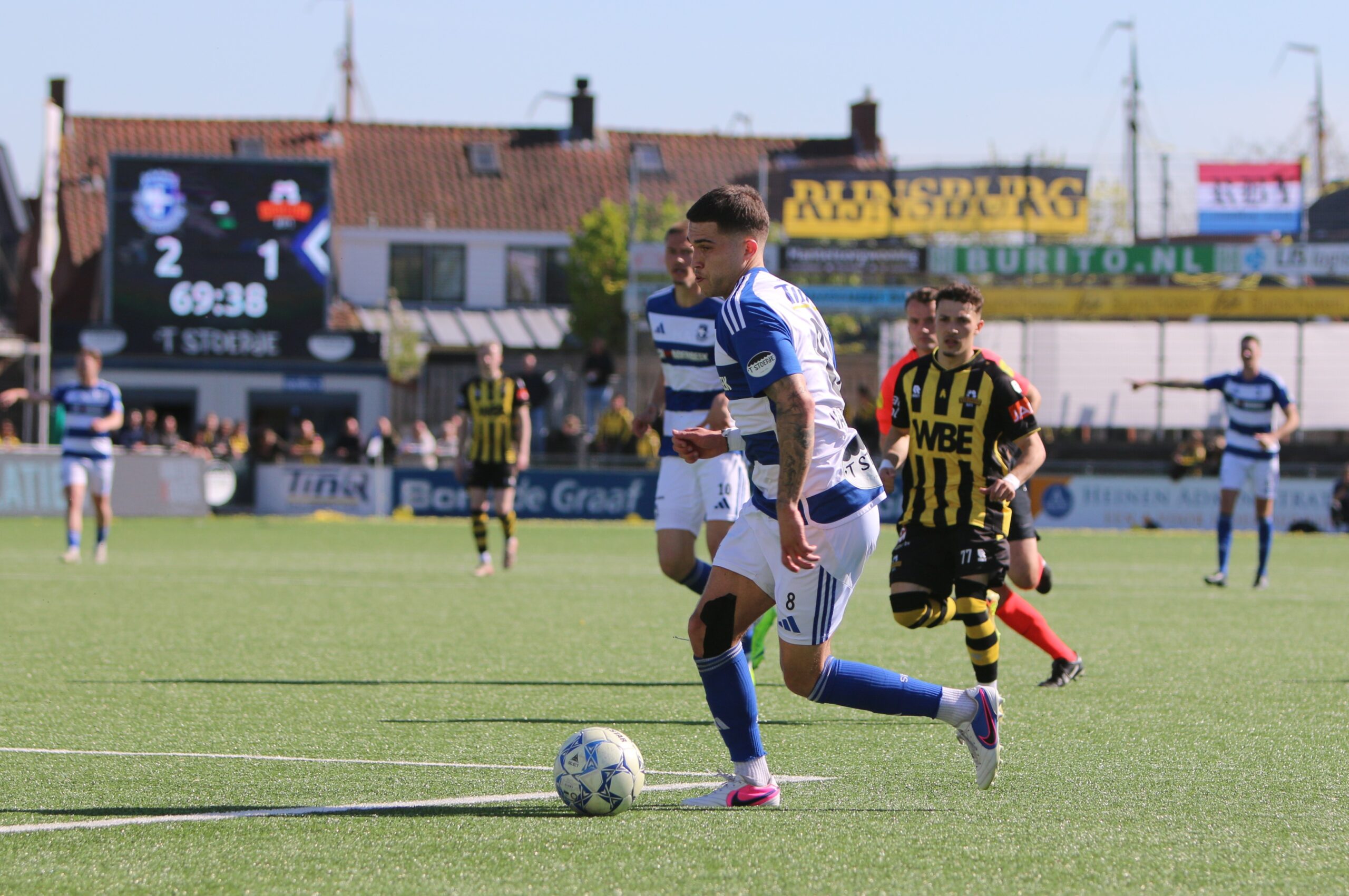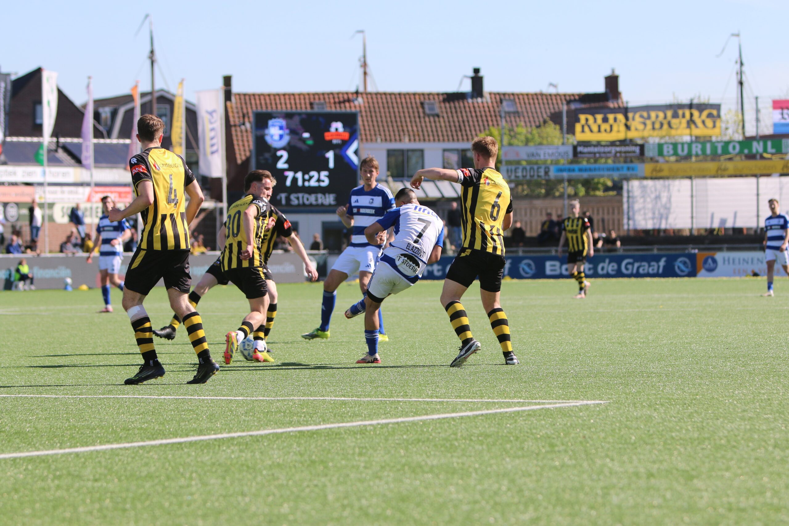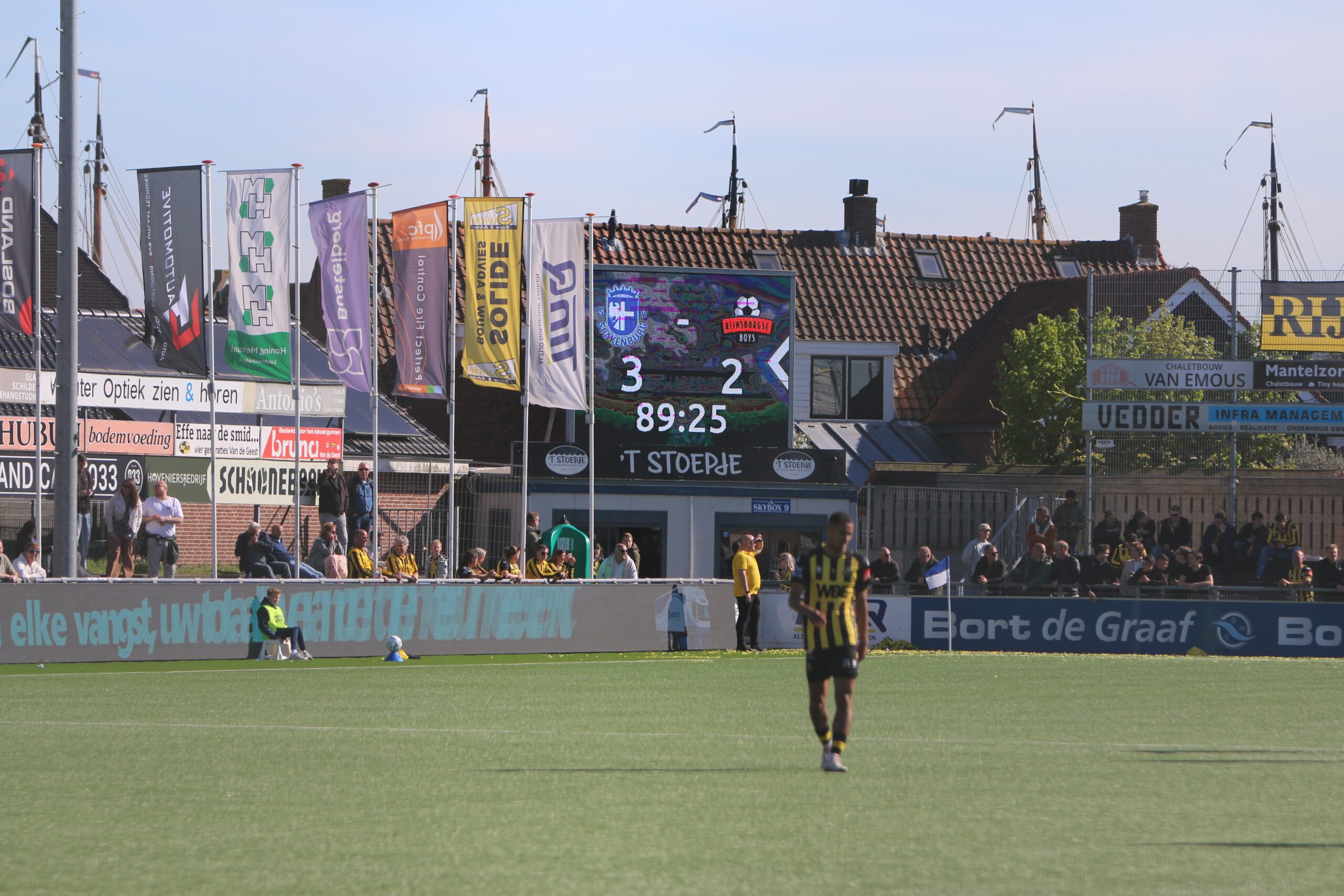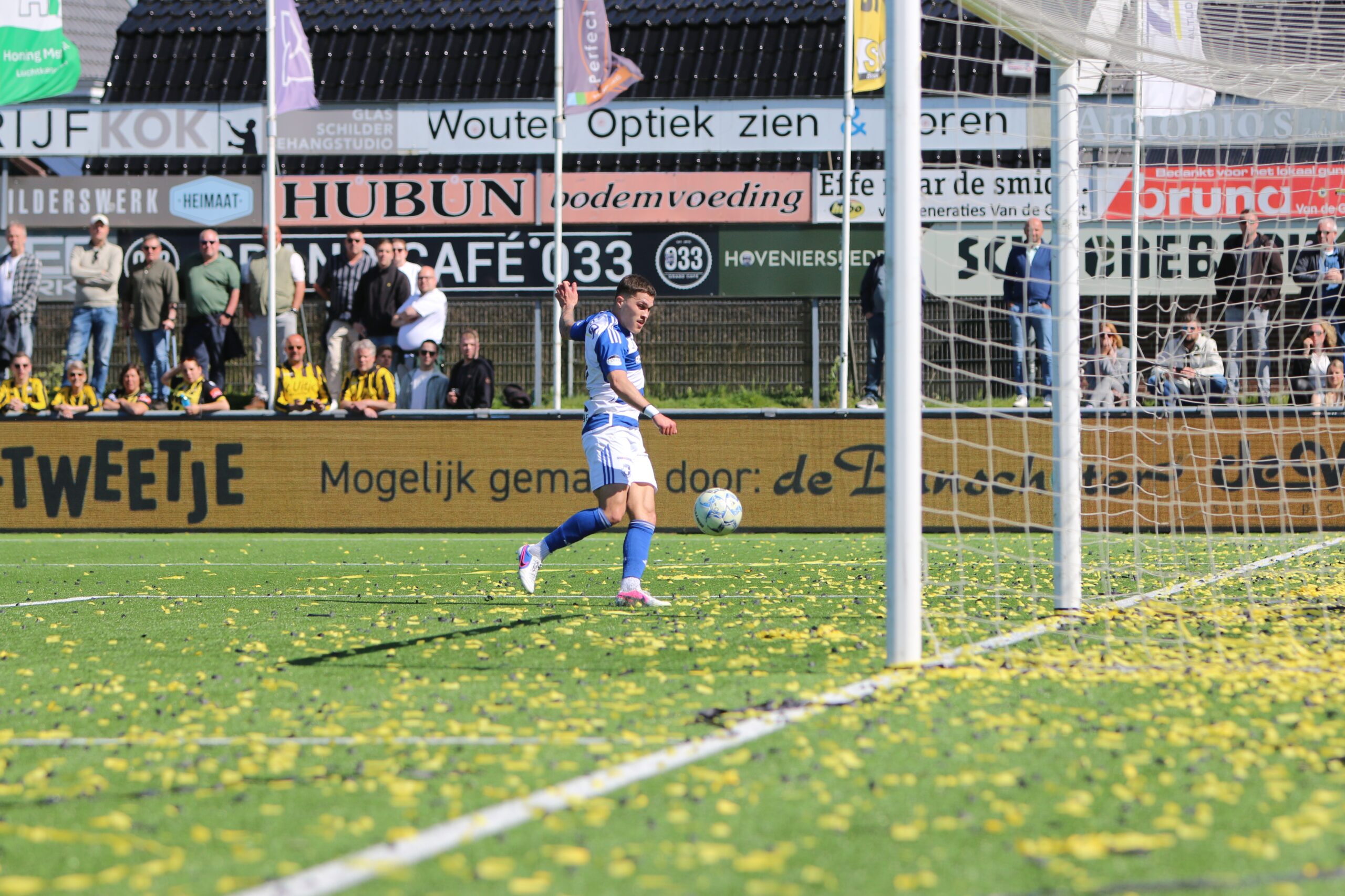 Maar wie dacht dat onze mannen onder grote druk zouden komen te staan, kwam bedrogen uit. SV Spakenburg verdedigde – opnieuw zonder Mitch Apau in de basis, die vlak voor tijd wel mocht invallen – gedisciplineerd en gaf nauwelijks iets weg. Sterker, ondanks een man minder, waren de mannen van hoofdtrainer Chris de Graaf gevaarlijker. Dat resulteerde in de 72e minuut in de 3-1. De onvermoeibaar strijdende Ahmed el Azzouti veroverde knap de bal en bediende Sam van Huffel. De middenvelder toonde zijn grote vorm door een verdediger eerst het bos in te sturen met een fantastische sleepbeweging, waarna hij overtuigend afrondde. Een geweldige goal!