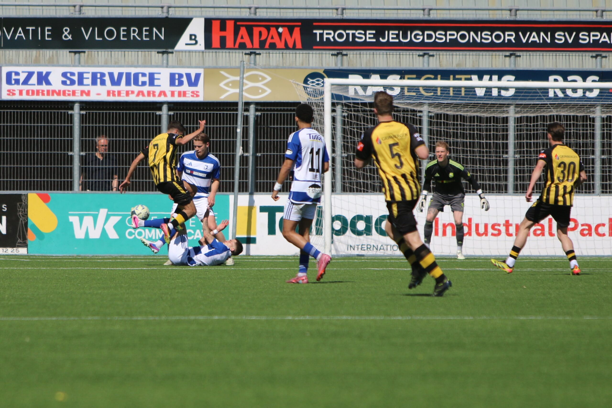 Opstelling Spakenburg: Joey Houweling, Hero van Lopik, Tim Linthorst, Jens Guiting, Olaf Kok, Des Kunst (87: Mitch Apau), Sam van Huffel, Dwayne Green, Ravelino Junte (69: Jeffry Puriel), Floris van der Linden (87: Killian van Mil) en Ahmed El Azzouti (79: Cody Claver)