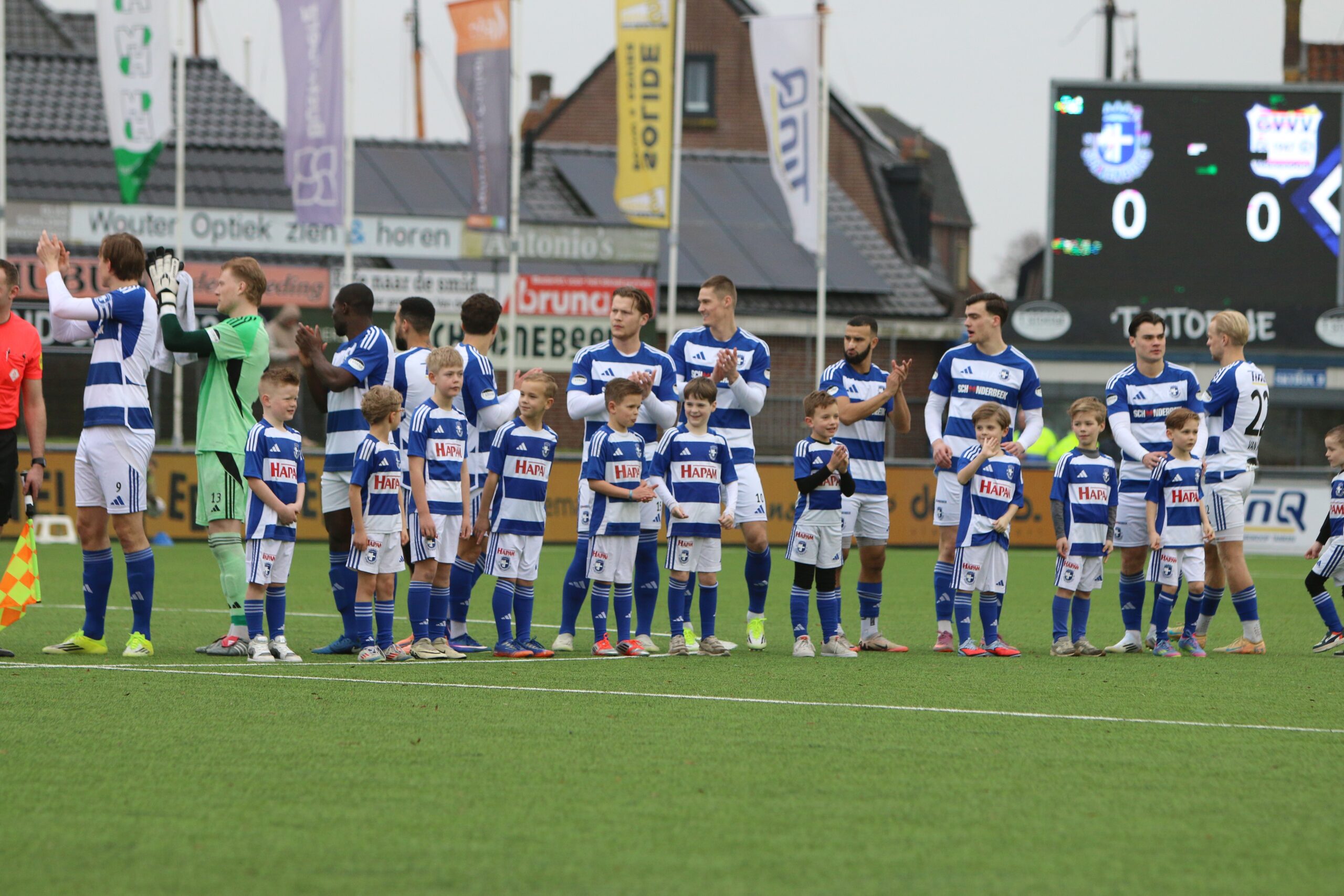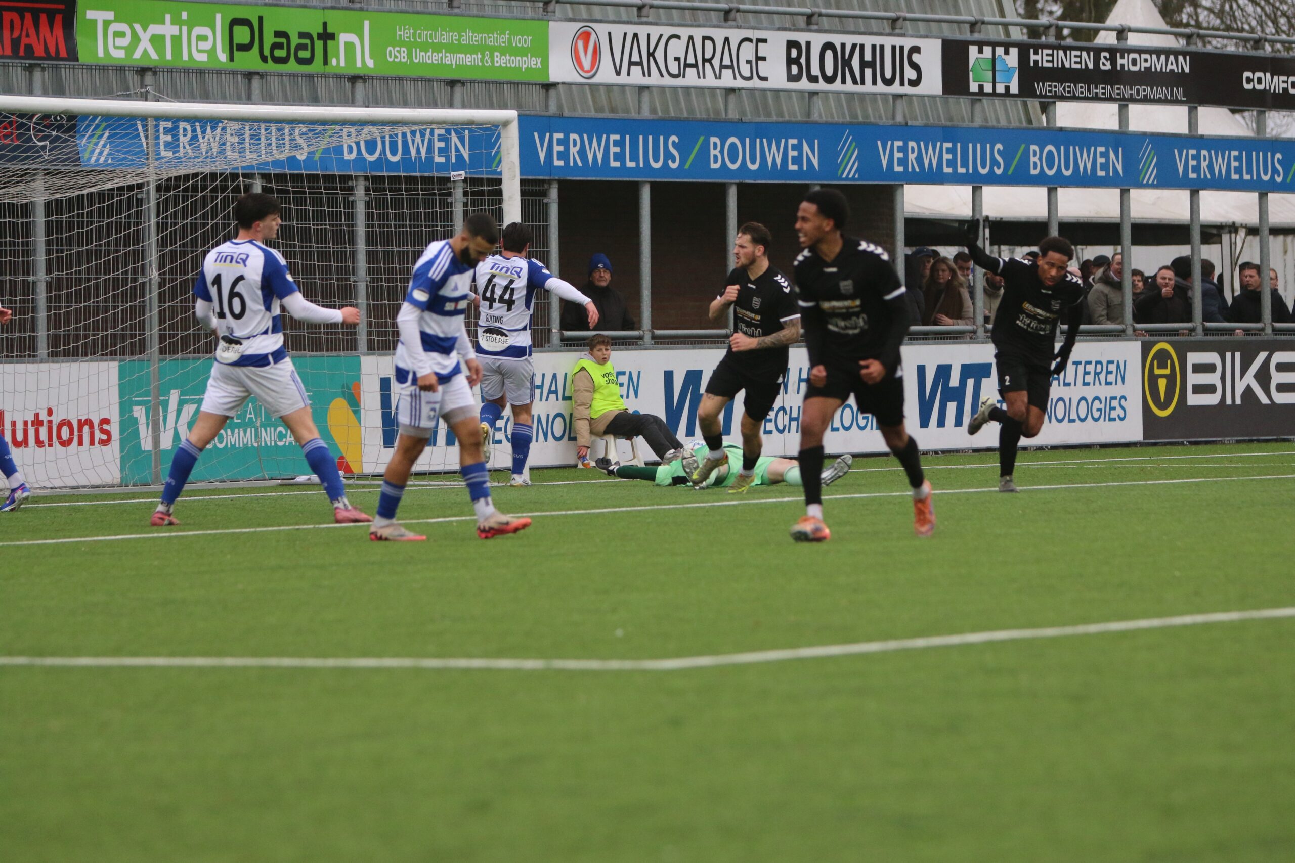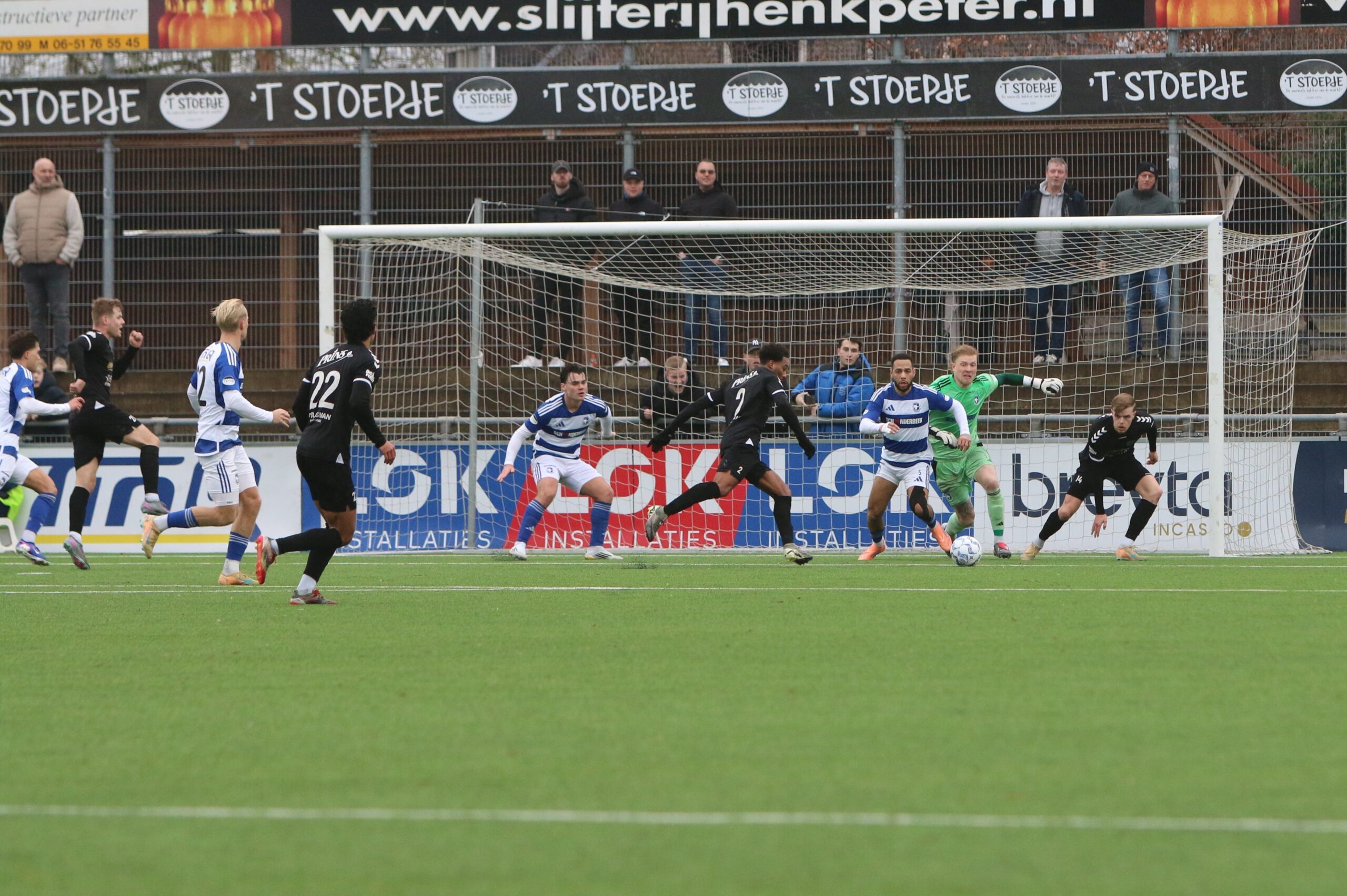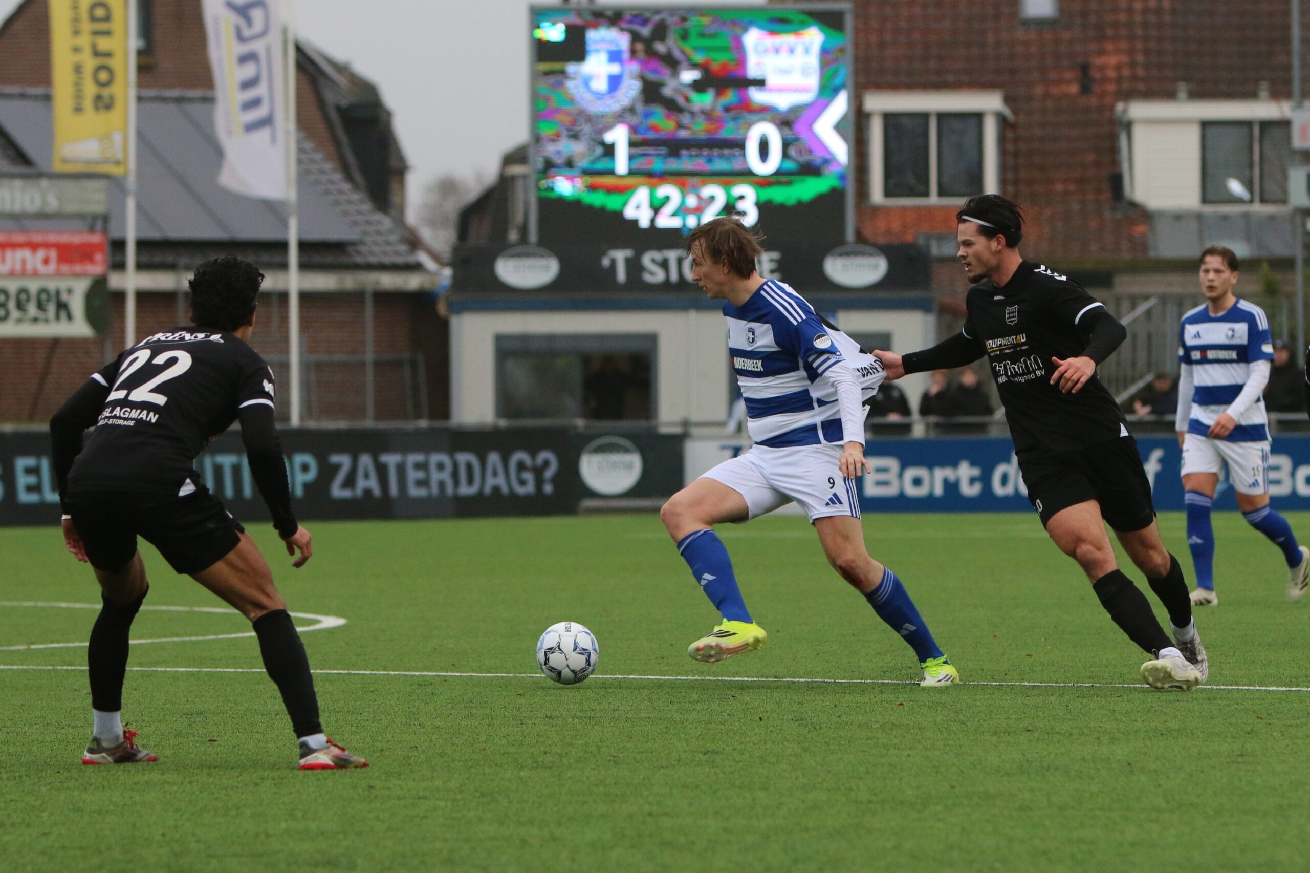 Toch kwam de spanning volledig terug in de wedstrijd. Op aangeven van Sint kon Latif de bal al glijdend achter Houweling werken. De ploeg van Gery Vink ging daarna uiteraard op zoek naar de wellicht verdiende gelijkmaker, maar in het voetbal draait het om rendement. Voetballend hoefde GVVV vandaag zeker geen voorbeeld te nemen aan de gastheren, maar qua efficiëntie en doeltreffendheid kregen zij van onze Blauwe formatie een lesje in effectiviteit voorgeschoteld.