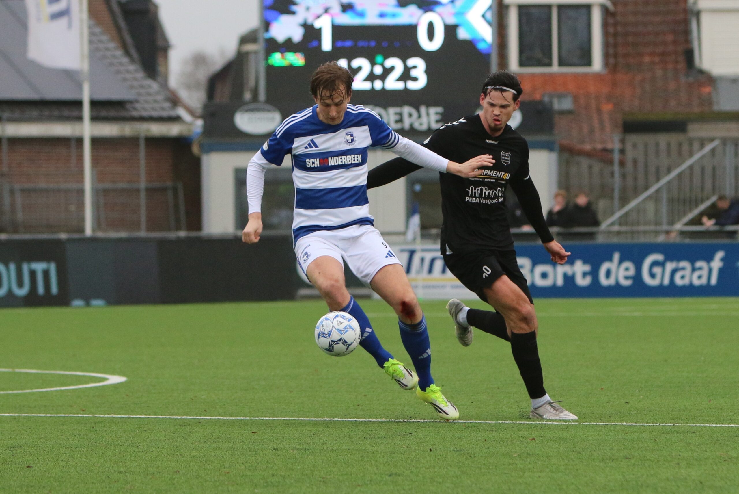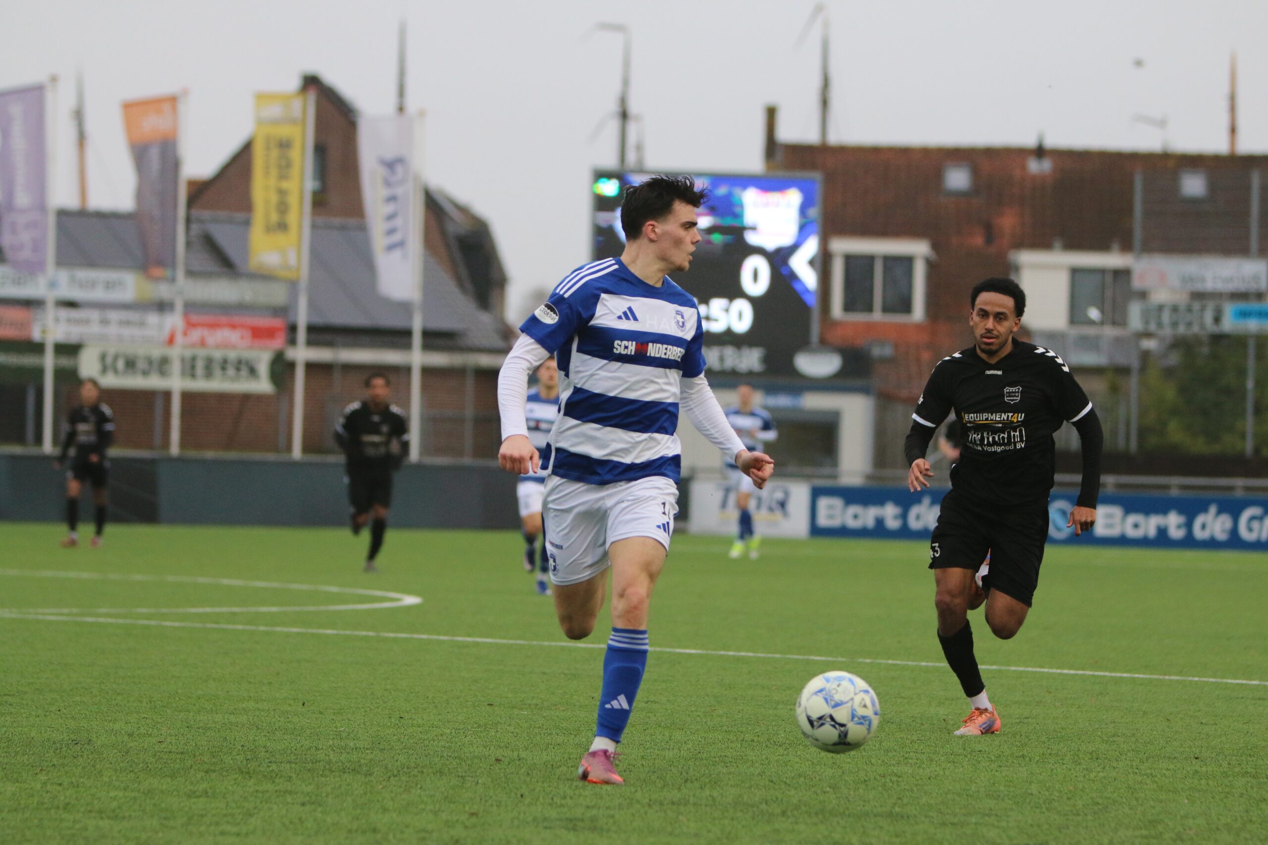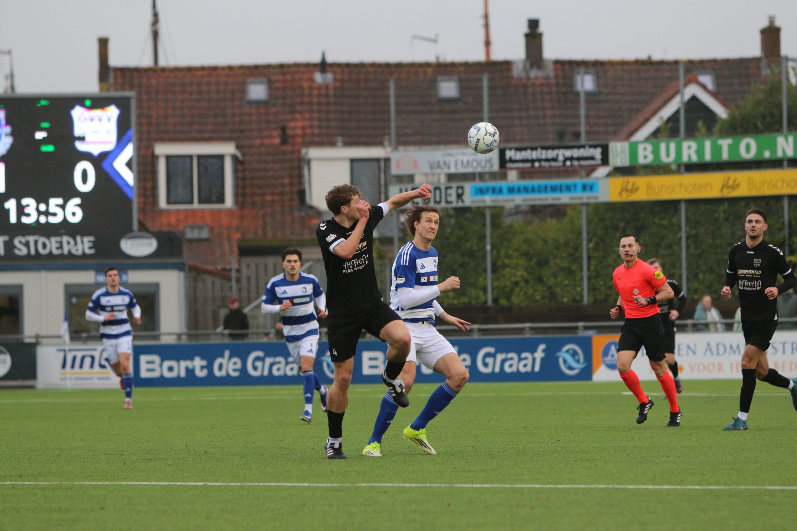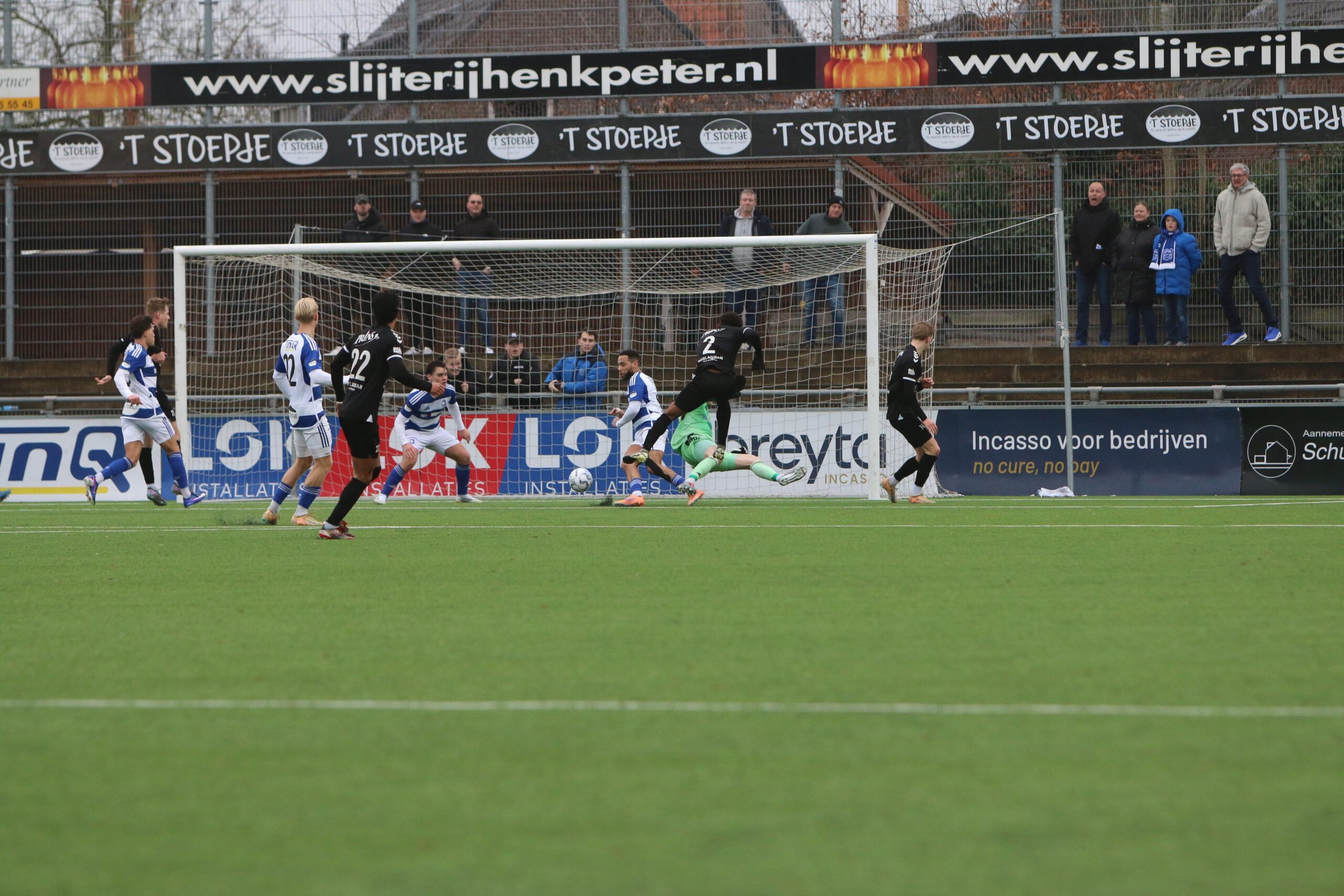 Toch kwam de spanning volledig terug in de wedstrijd. Op aangeven van Sint kon Latif de bal al glijdend achter Houweling werken. De ploeg van Gery Vink ging daarna uiteraard op zoek naar de wellicht verdiende gelijkmaker, maar in het voetbal draait het om rendement. Voetballend hoefde GVVV vandaag zeker geen voorbeeld te nemen aan de gastheren, maar qua efficiëntie en doeltreffendheid kregen zij van onze Blauwe formatie een lesje in effectiviteit voorgeschoteld.