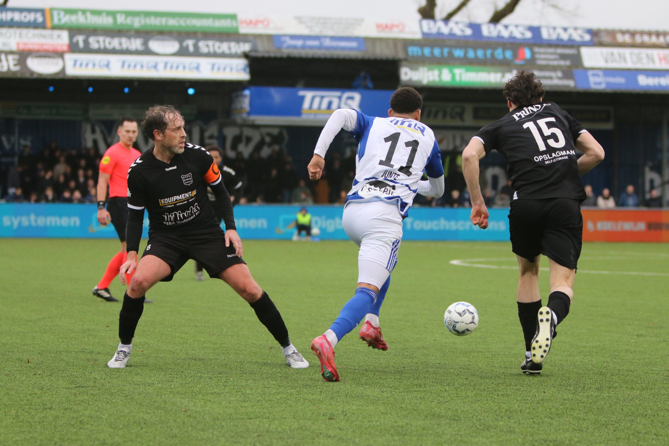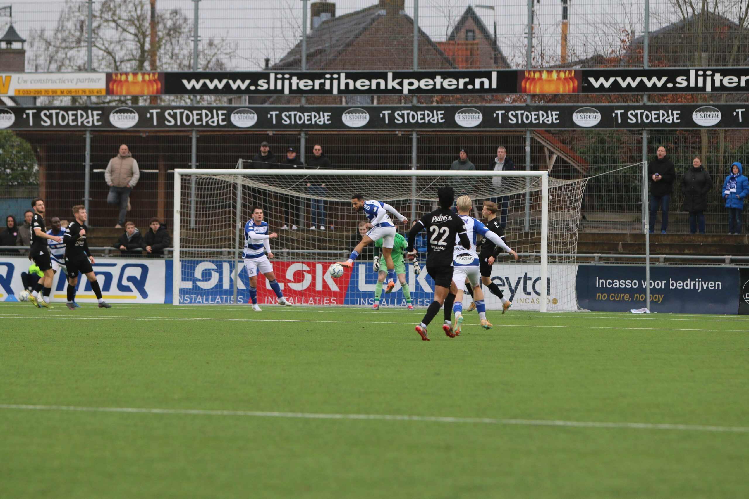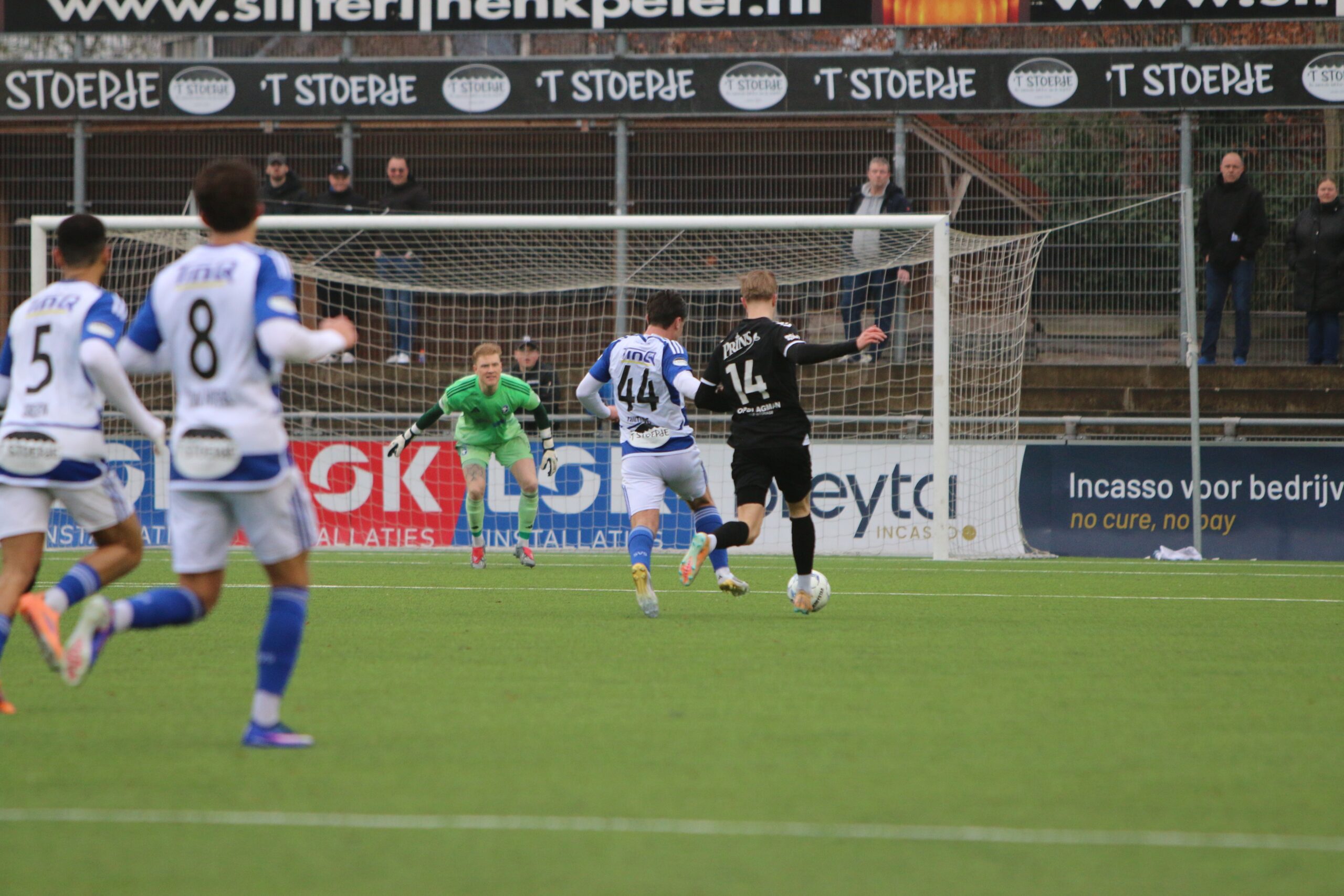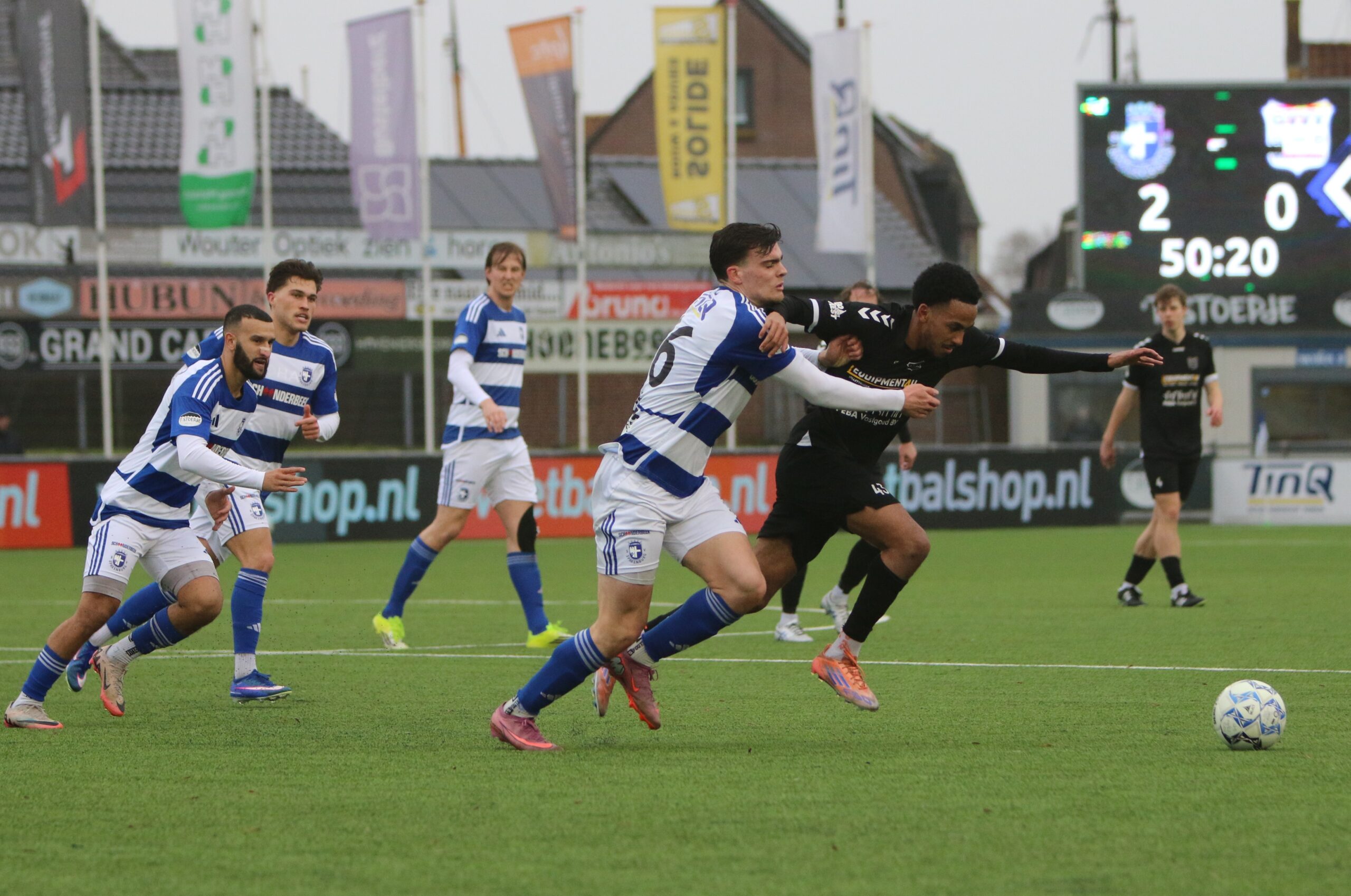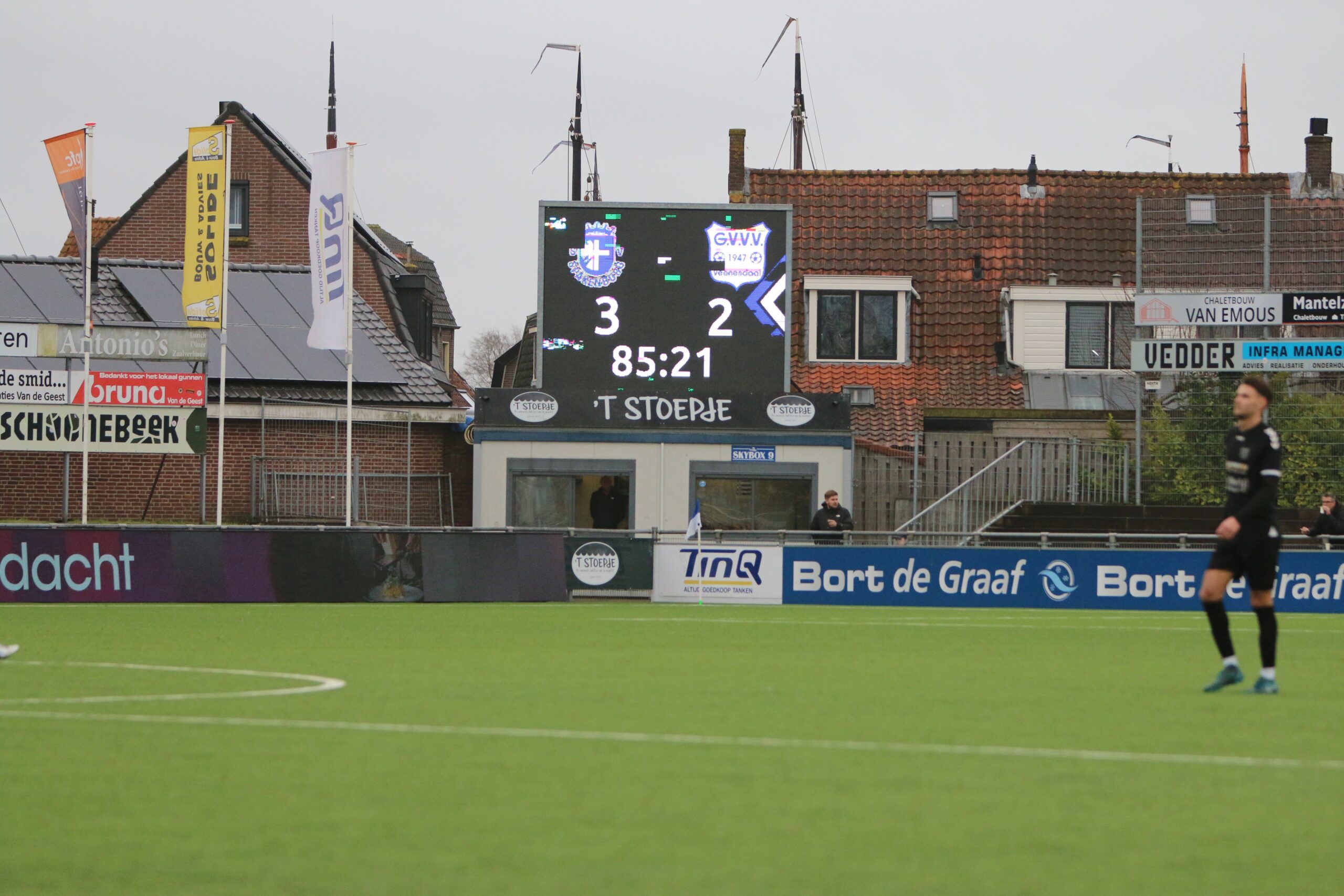 Toch kwam de spanning volledig terug in de wedstrijd. Op aangeven van Sint kon Latif de bal al glijdend achter Houweling werken. De ploeg van Gery Vink ging daarna uiteraard op zoek naar de wellicht verdiende gelijkmaker, maar in het voetbal draait het om rendement. Voetballend hoefde GVVV vandaag zeker geen voorbeeld te nemen aan de gastheren, maar qua efficiëntie en doeltreffendheid kregen zij van onze Blauwe formatie een lesje in effectiviteit voorgeschoteld.