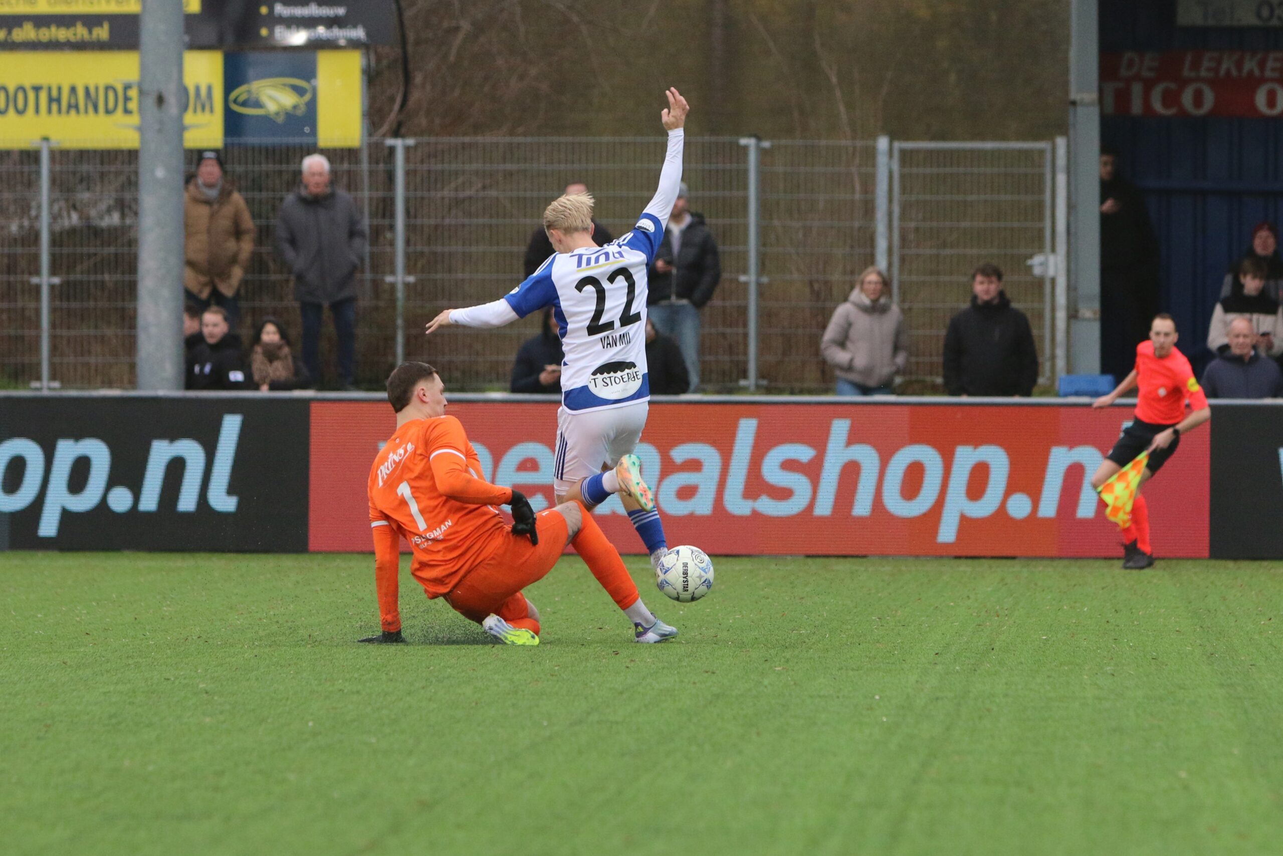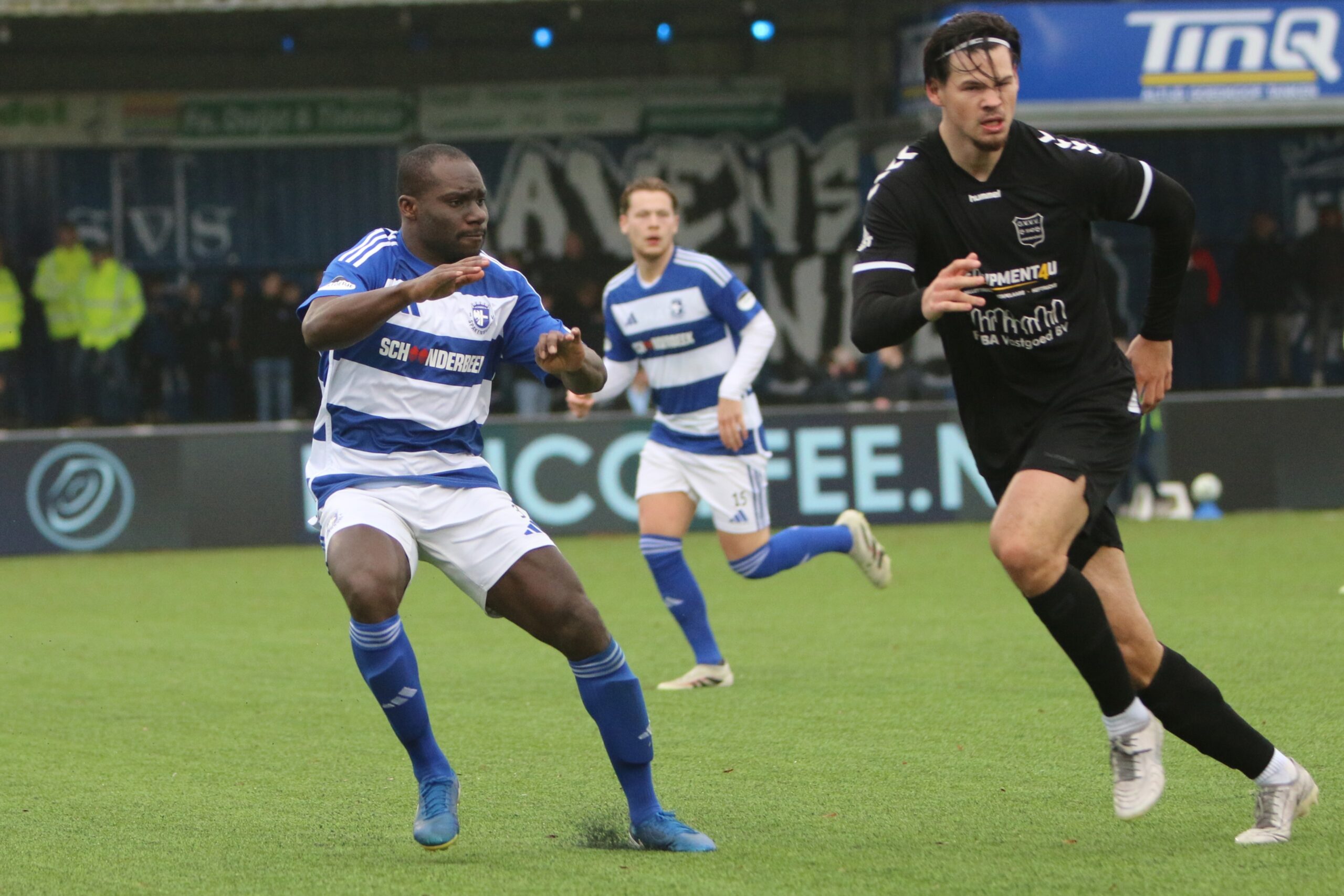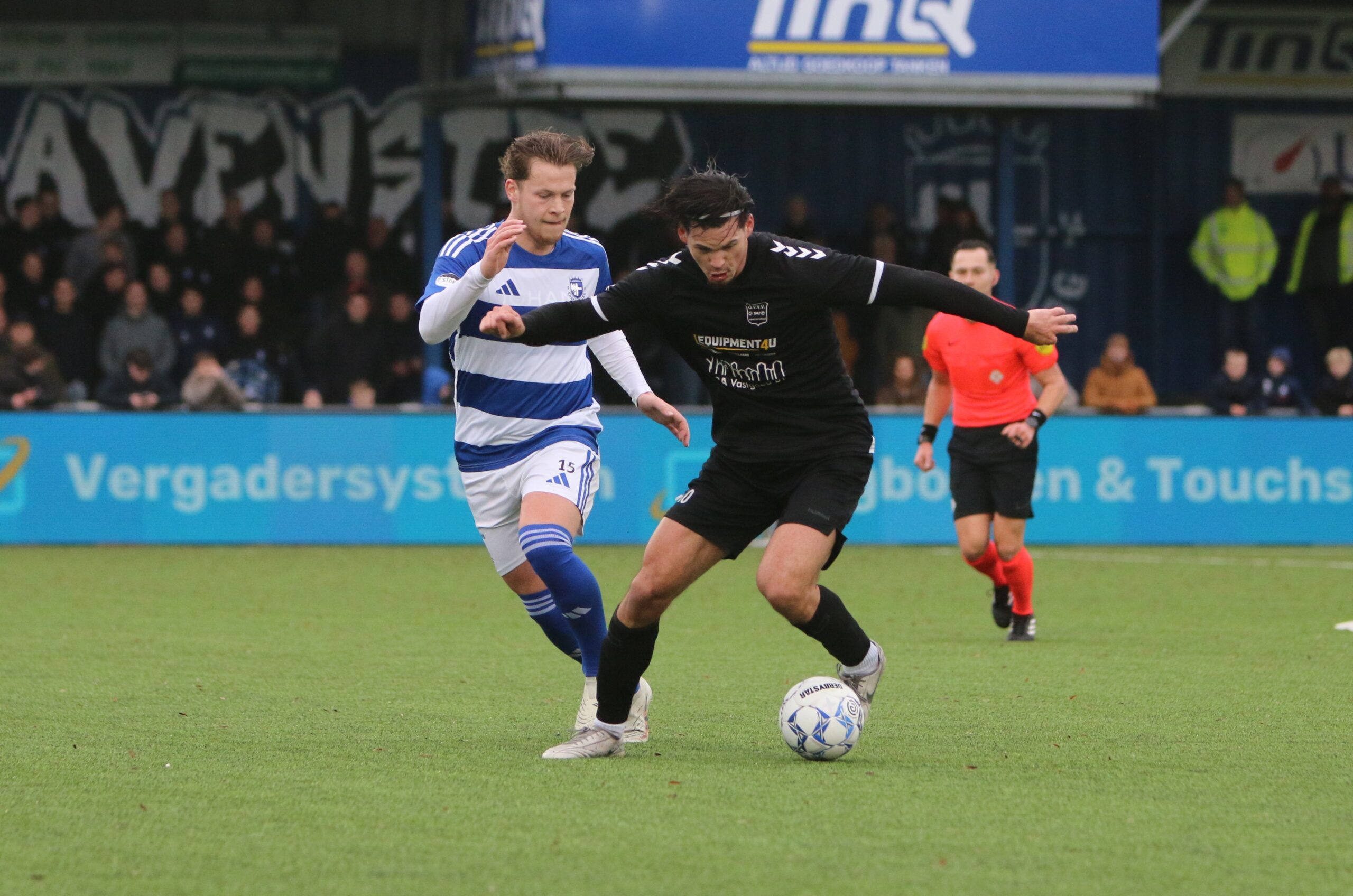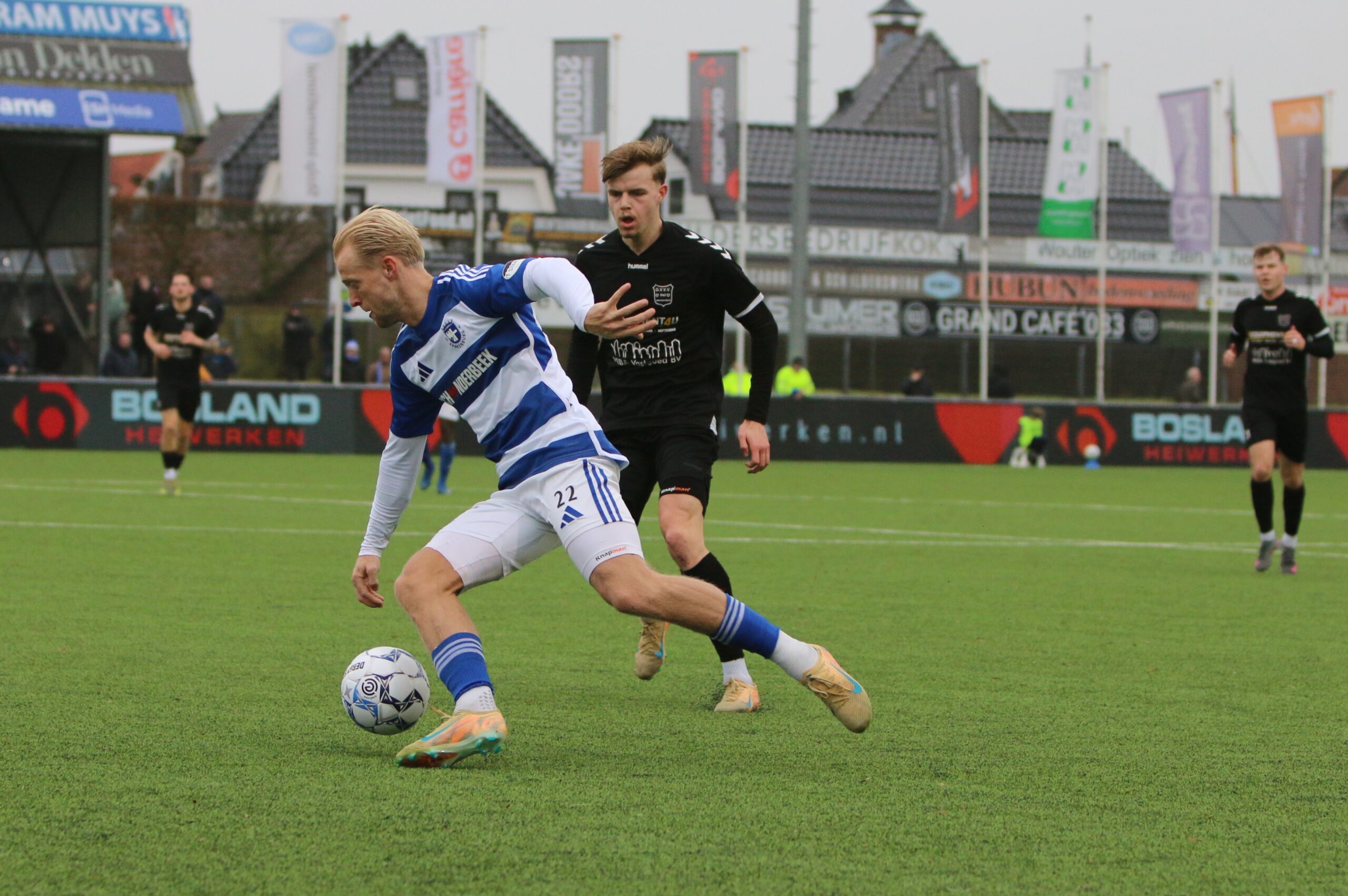 Toch kwam de spanning volledig terug in de wedstrijd. Op aangeven van Sint kon Latif de bal al glijdend achter Houweling werken. De ploeg van Gery Vink ging daarna uiteraard op zoek naar de wellicht verdiende gelijkmaker, maar in het voetbal draait het om rendement. Voetballend hoefde GVVV vandaag zeker geen voorbeeld te nemen aan de gastheren, maar qua efficiëntie en doeltreffendheid kregen zij van onze Blauwe formatie een lesje in effectiviteit voorgeschoteld.