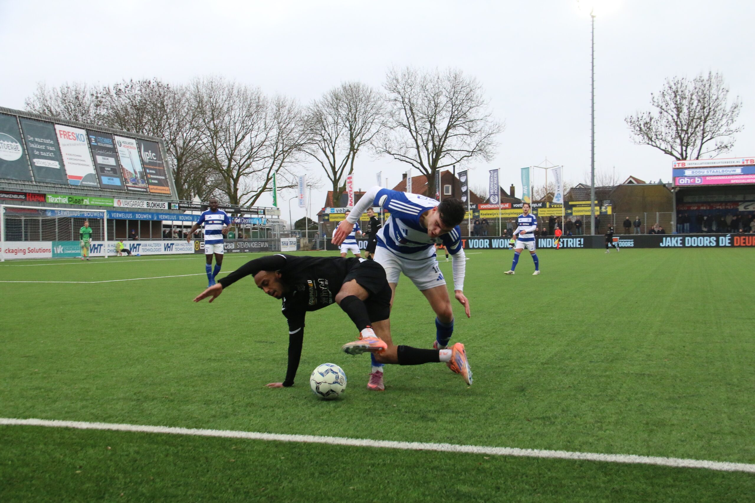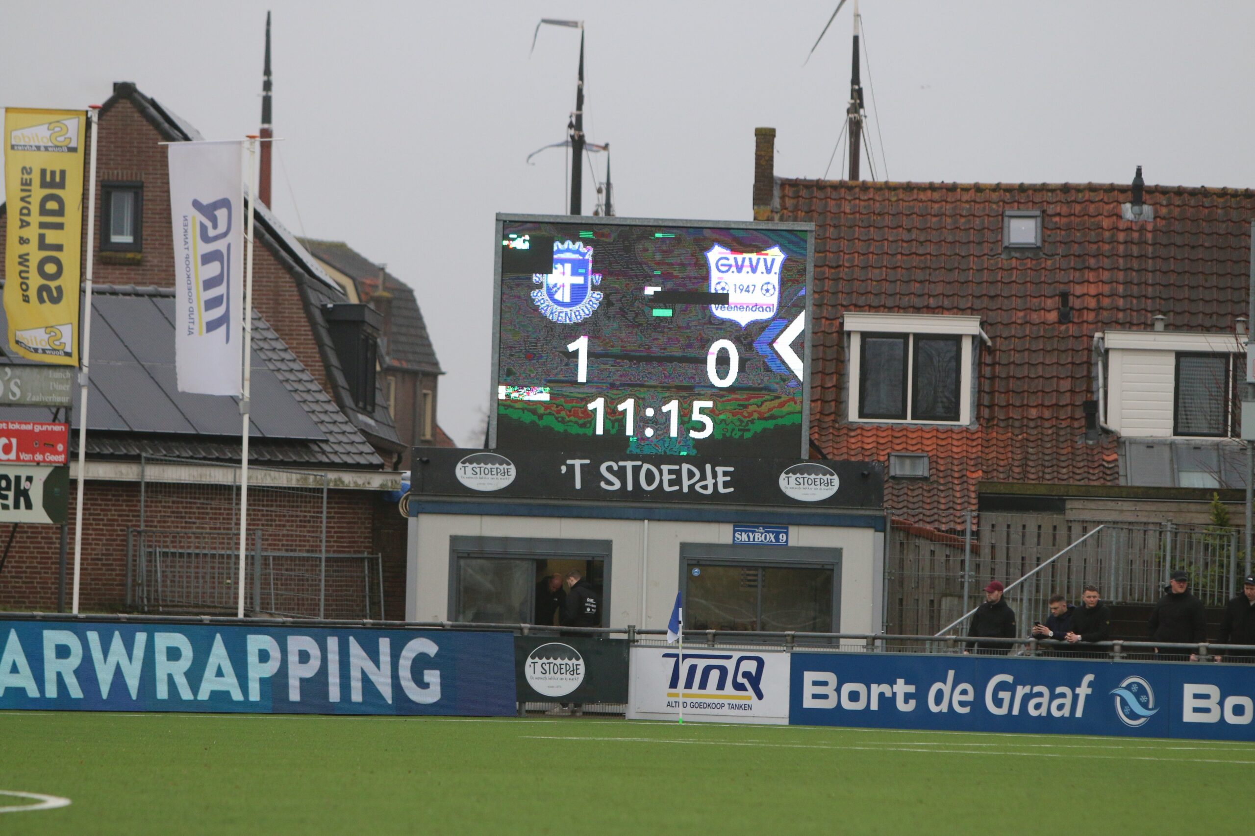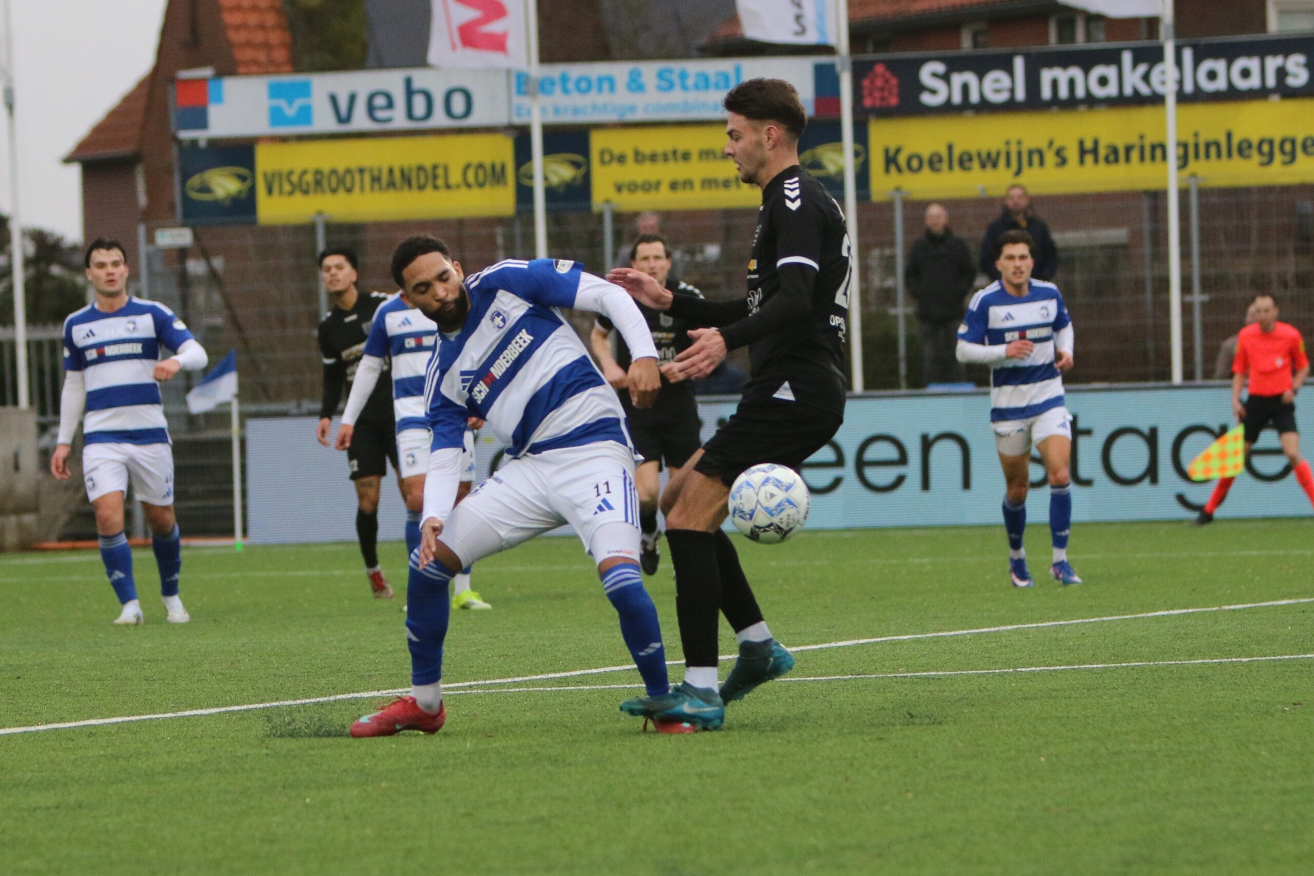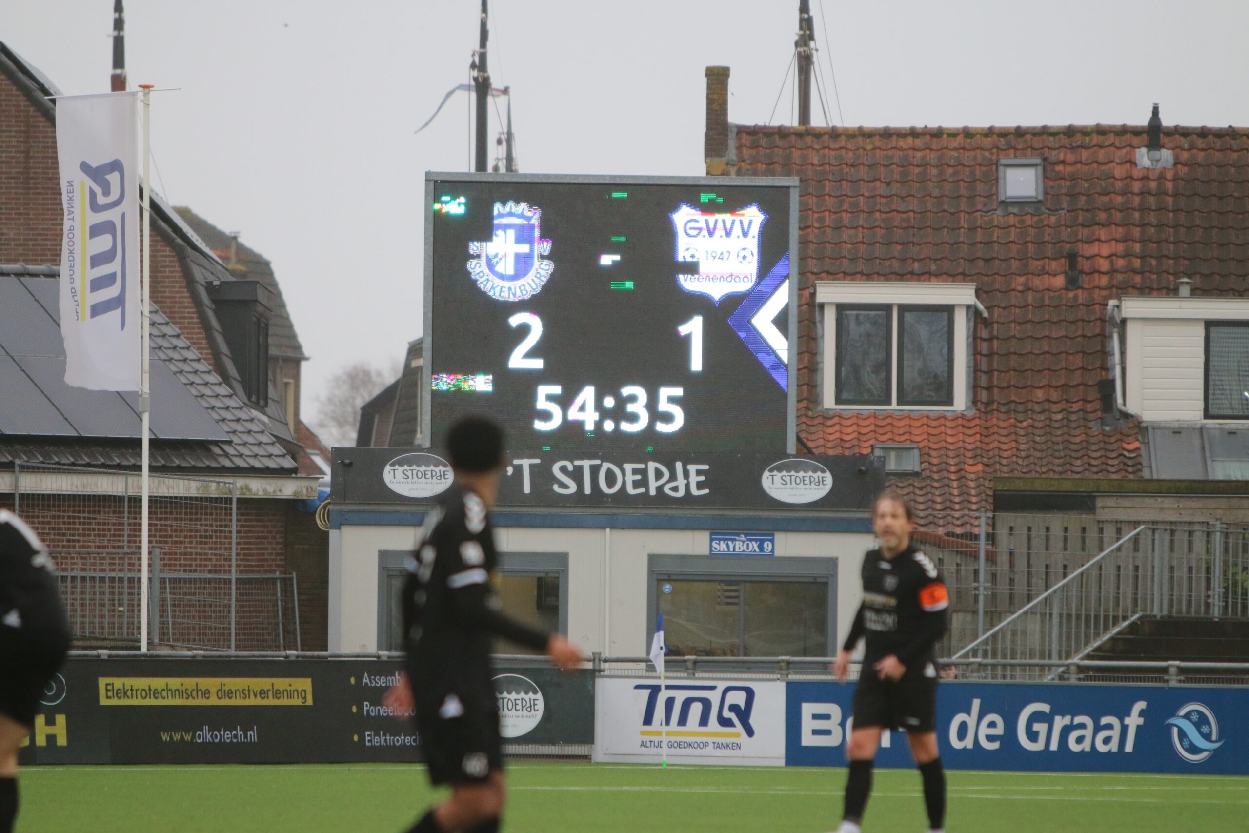 Waar de bezoekers veelvuldig de bal hadden, deelde Spakenburg de klappen uit. Een snelle, vlijmscherpe omschakeling bleek de Veenendalers opnieuw fataal. Een afgemeten voorzet belandde bij de tweede paal precies op het hoofd van spits Floris van der Linden. Hij kopte de bal hard richting het doel, waarbij de bal via het lichaam van GVVV-verdediger Quiermo Dumay van richting werd veranderd. De verdediger was daardoor even al zijn oriëntatie kwijt en tot grote blijdschap van het thuispubliek plofte de bal tegen de touwen op de inzet van de Blauwe topschutter. Met een 2-0 voorsprong zochten onze Blauwen uiteindelijk ook de kleedkamer op.