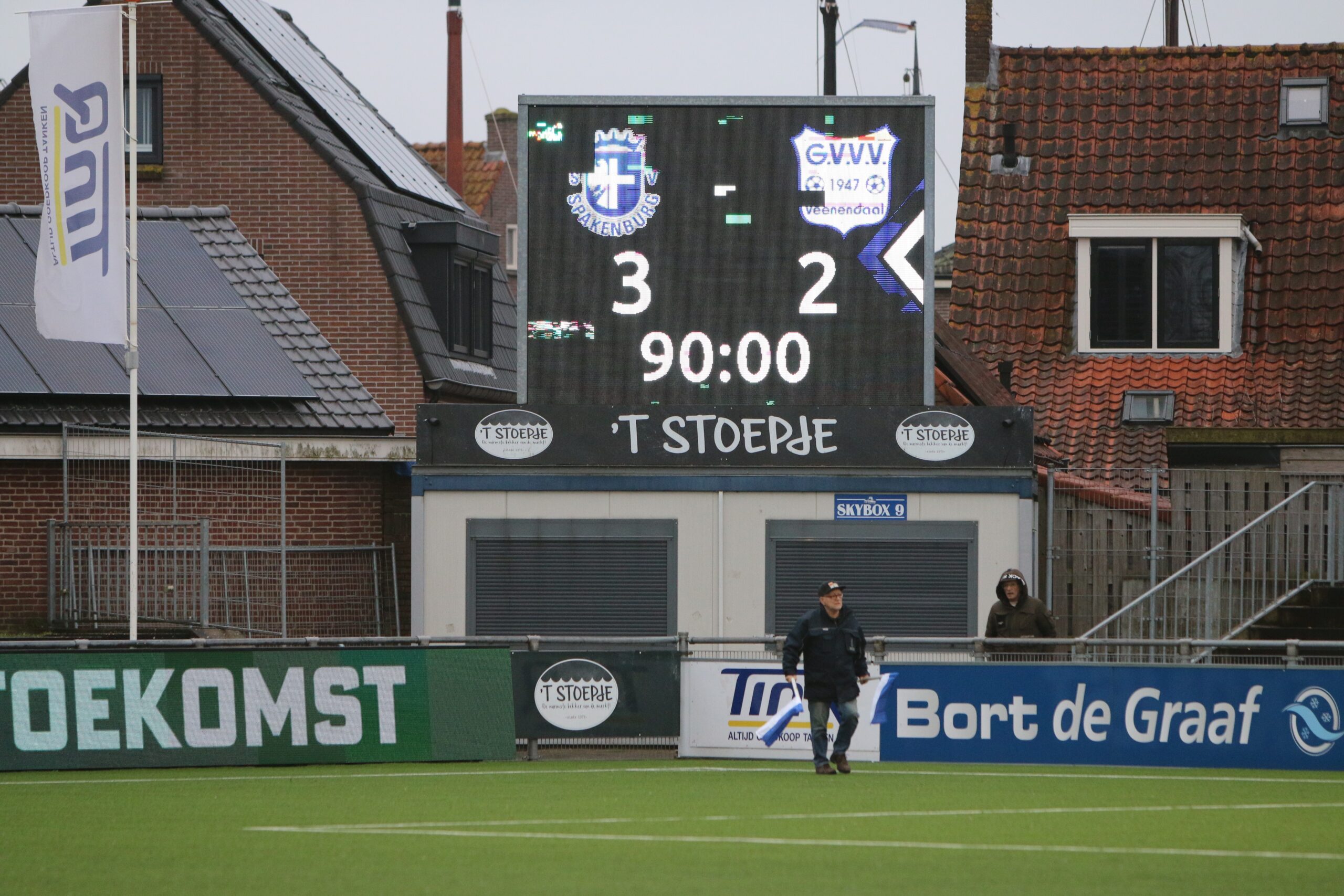 In het tweede bedrijf had GVVV overduidelijk de overhand en was het tegenhouden geblazen voor de equipe van Chris de Graaf. GVVV zocht nadrukkelijk de aanval en Spakenburg probeerde er wel uit te breken, maar kwam daar eigenlijk niet aan toe. De Veenendaalers melde zich veelvuldig in de Spakenburgse 16, maar hadden moeite om het net te vinden. Illustratief was het missen van een mega kans door de sterk spelende Quincy Veenhof. Minstens zo tekenend was dat het direct daarna alsnog mis ging voor Spakenburg. De bal bleef in Veenendaals bezit werd op goal gekopt door Justin Spies. Op zijn inzet had Houweling nog een antwoord, maar de rebound was een prooi voor Dilrosun. Zo kwam GVVV terug naar een 2-1 achterstand en was het jagen op de gelijkmaker begonnen.