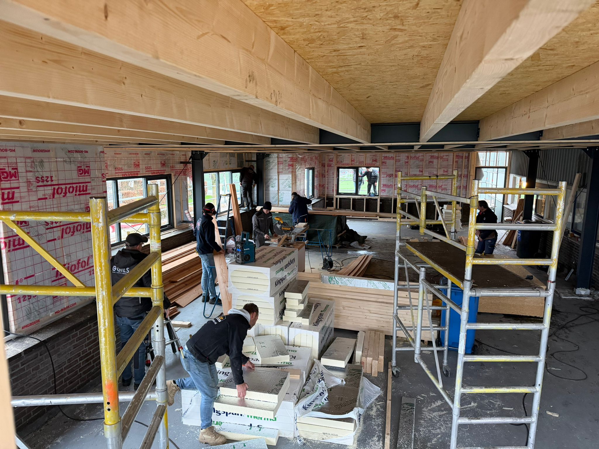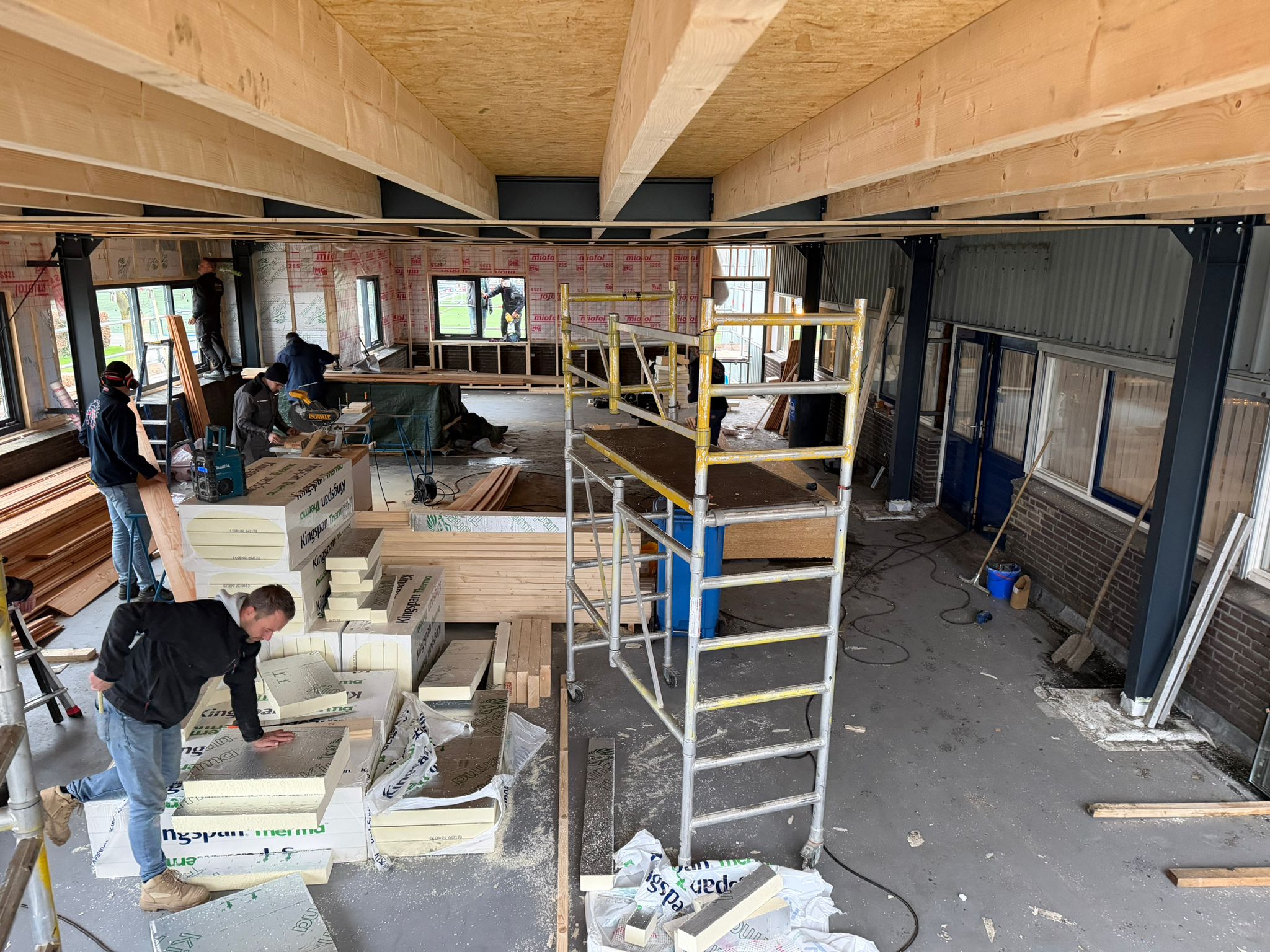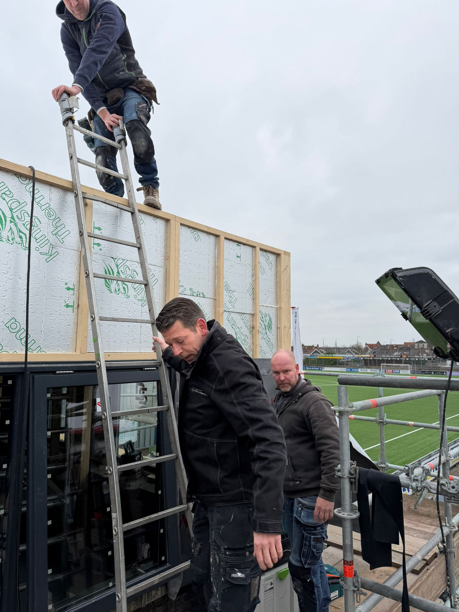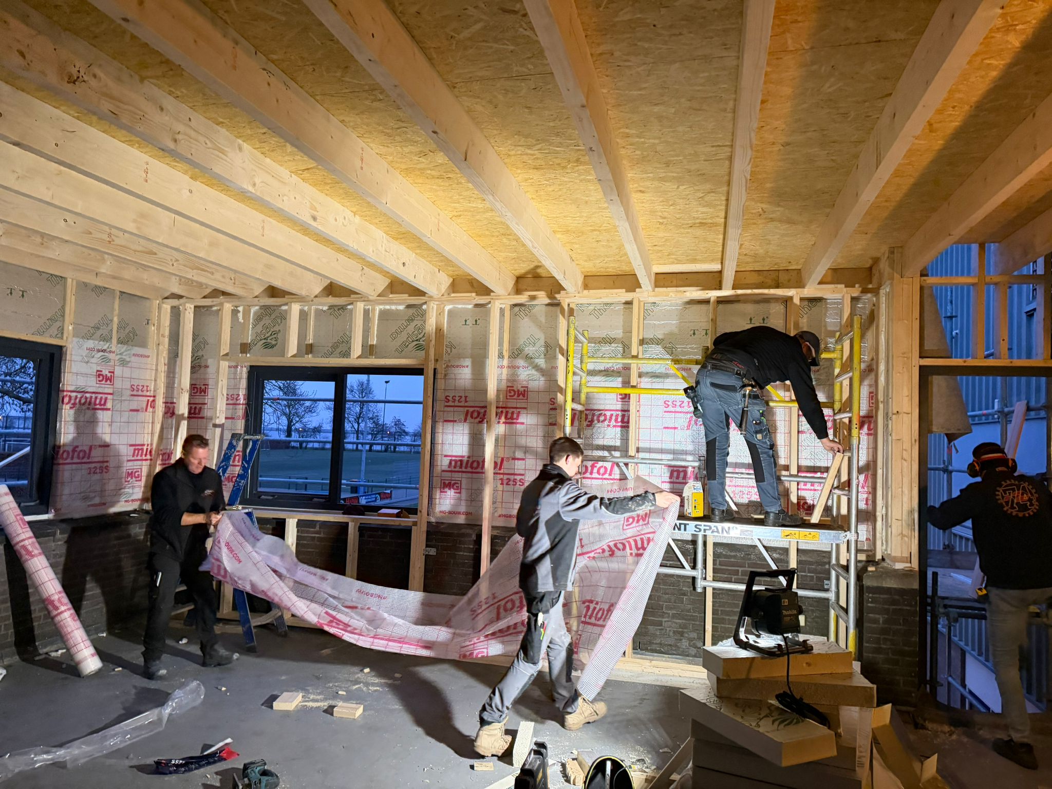Afgelopen week is er weer keihard gewerkt, zijn er grote stappen gezet en ons tijdelijke Blauwe onderkomen krijgt daarmee steeds meer vorm. In totaal zijn er, tot nu toe, over acht dagen verspreid gemiddeld zo’n 20 vrijwilligers per dag aan de slag geweest. Daarmee gaan we richting de 1000 uren aan tijd die er door de vrijwilligers al in het project is gestopt. Een topprestatie die kracht geeft aan onze clubwoorden: Samen Werken, Samen Bouwen! Via deze weg alvast al heel veel dank namens de gehele club.