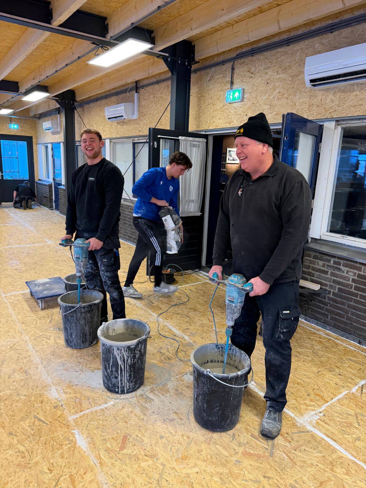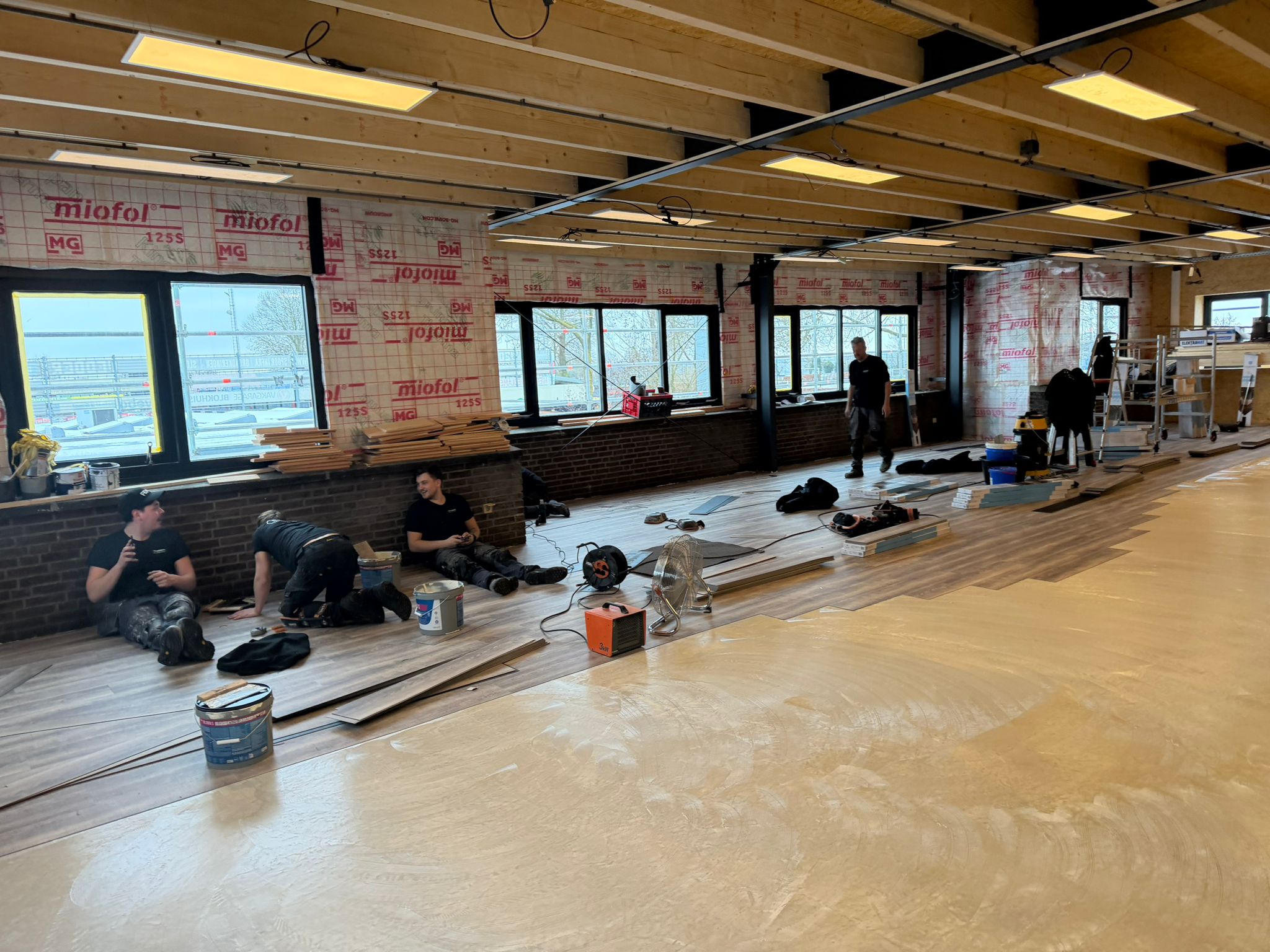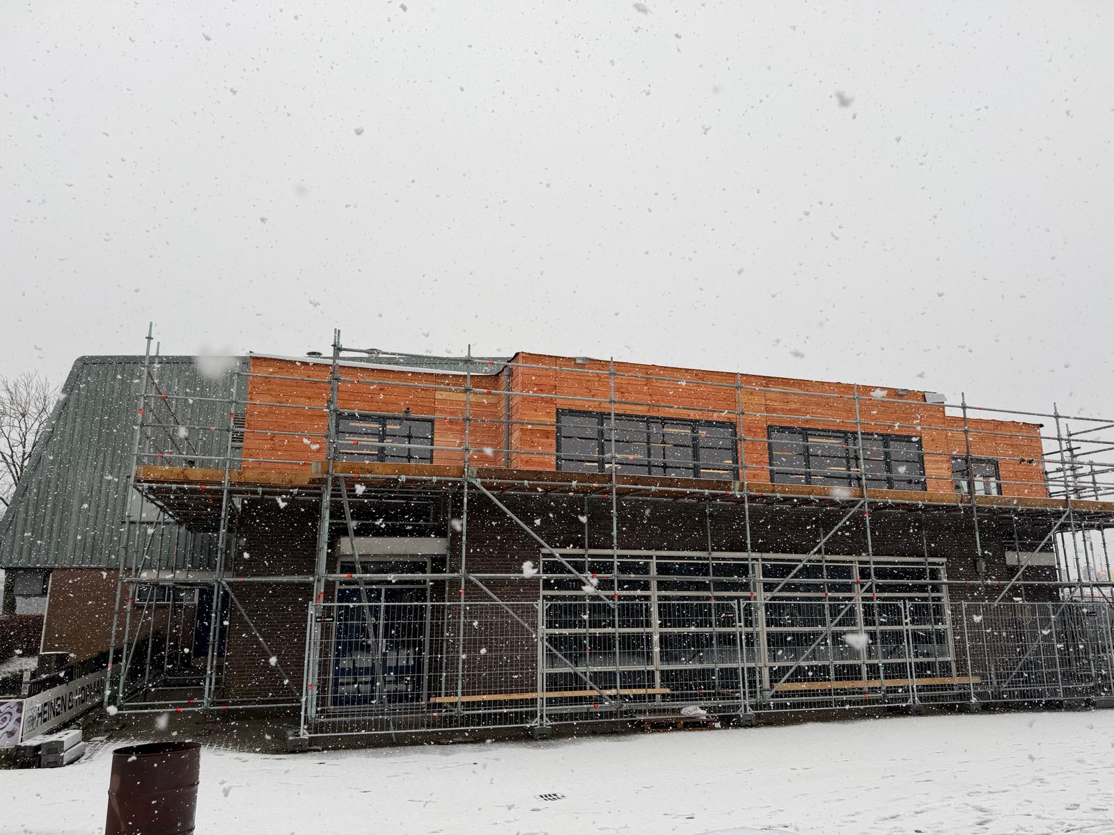 De planning is dat in deze week het systeem plafond gemaakt gaat worden, de binnenwand aan de buitengevel in de houten delen gezet wordt en de schilders in de avonduren aan de slag gaan. Daarna zal in de komende twee weken de bar samen met Heineken in orde worden gemaakt zodat vervolgens Harold de tijdelijke kantine kan gaan inrichten. Op zaterdag 21 februari moet ons nieuwe tijdelijke onderkomen dan helemaal klaar zijn!